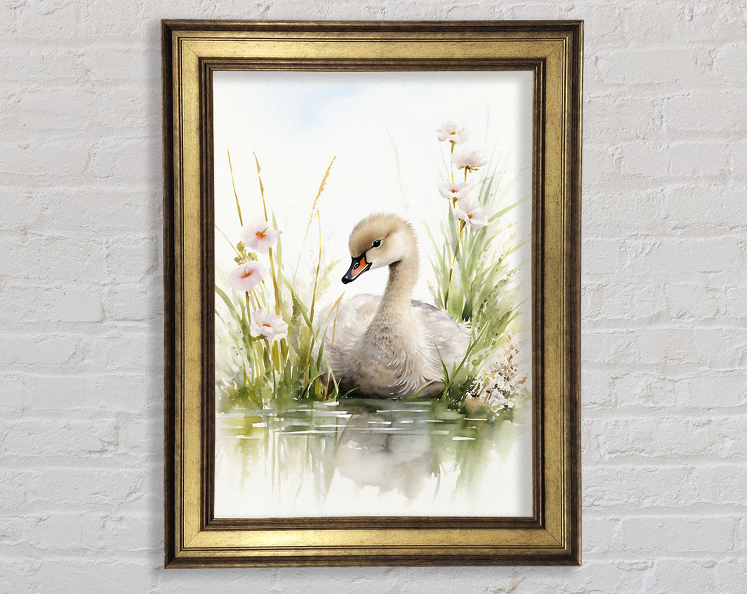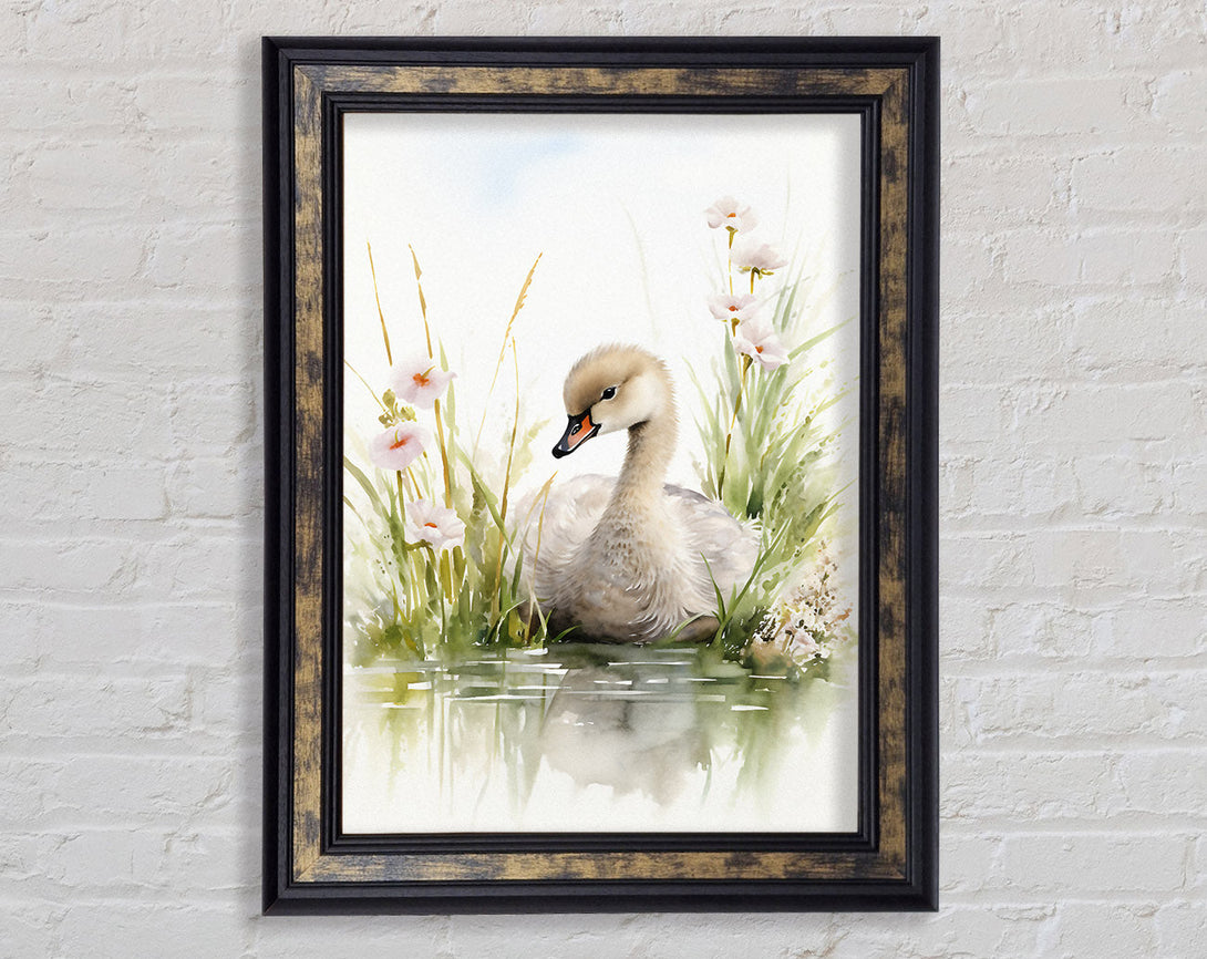 Baby Swan Swim Framed Print