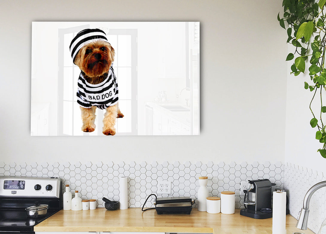 Bad Dog acrylic print, UV printed onto 5mm thick acrylic glass. Comes with everything you need to hang on your wall.