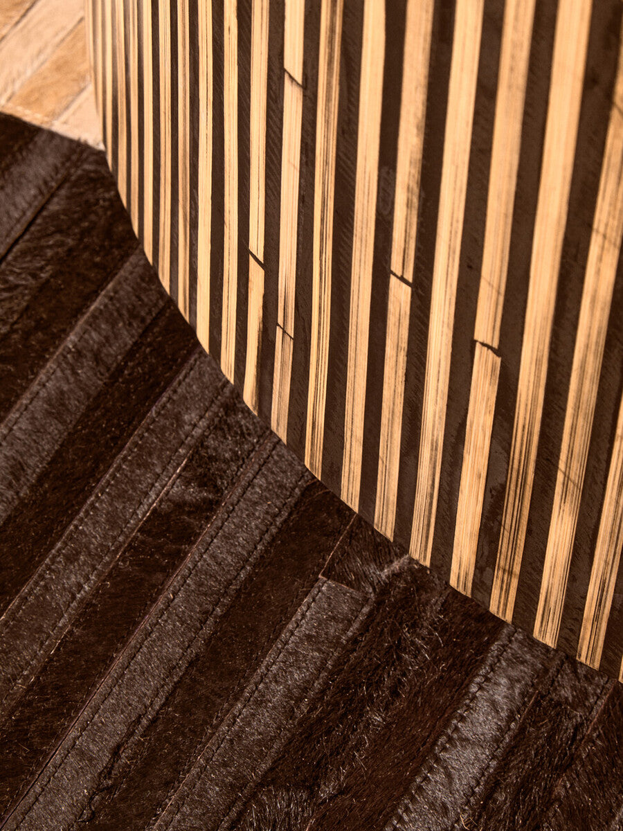 The hand-laid bamboo inlay introduces a warm, textural pattern that reads both modern and timeless. Its natural tone softens contemporary spaces and harmonizes with rattan, linen, and light woods, perfect for coastal, Japandi, and Scandinavian styles. Built for daily life, the smooth surface is simple to maintain; just add coasters and a tray to protect and organize your essentials.