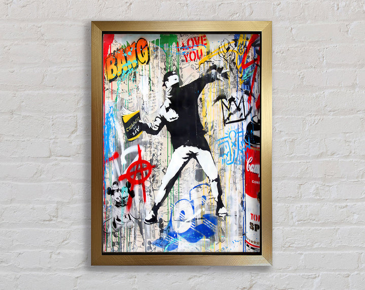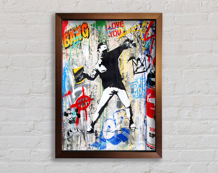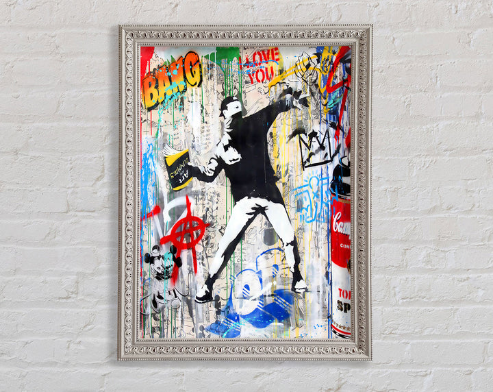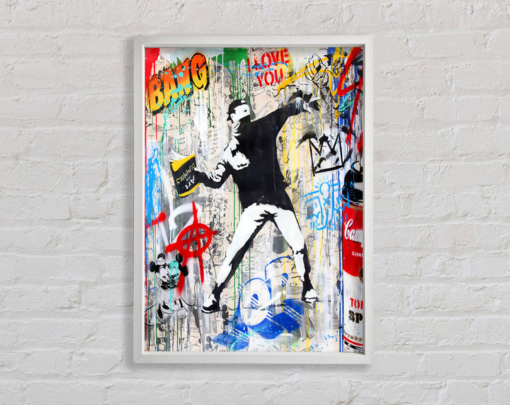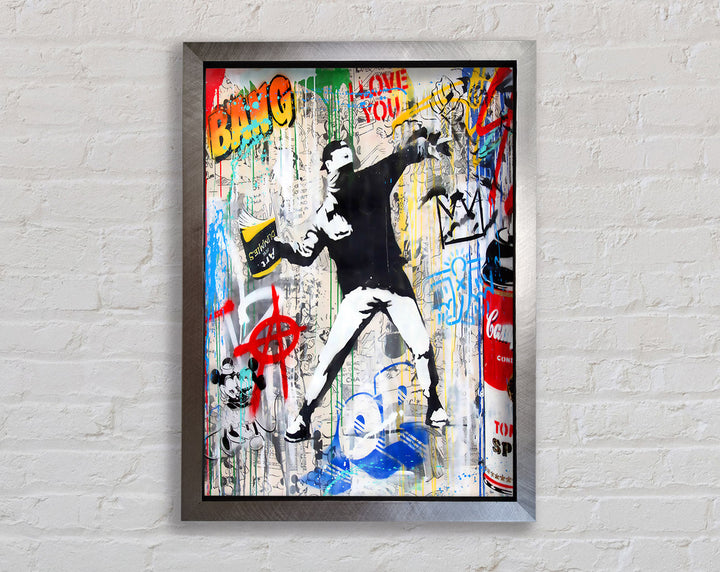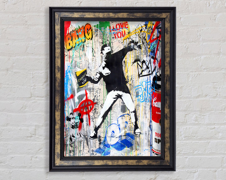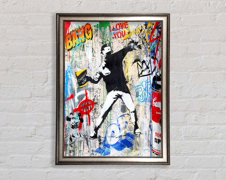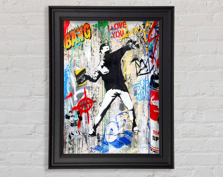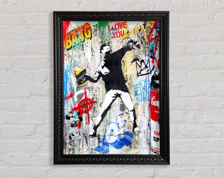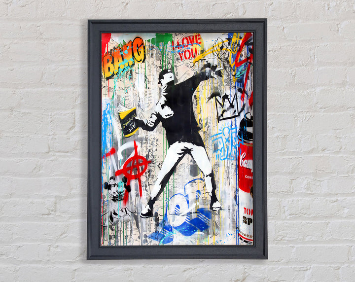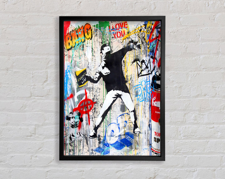 Add a touch of rebellious charm to your space with the Banksy Flower Thrower Man Framed Print. This iconic piece of framed art captures the spirit of street art with its striking imagery and bold statement. Available in six sizes, from small to oversized, it fits perfectly in any room. Choose from a variety of colors to match your décor and make a statement. Each print is handmade in the United Kingdom, ensuring high quality and attention to detail. The ready-to-hang feature allows for easy installation, transforming your wall instantly. Elevate your home or office with this powerful and thought-provoking artwork.