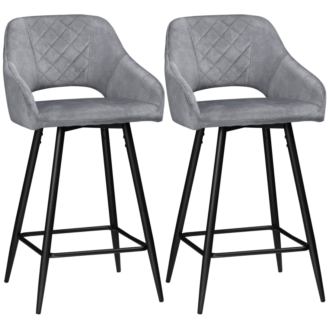 These two perfectly plush bar stools, from HOMCOM, will sprinkle just the right amount of elegance into your home. The tub-shaped seats with high backs and armrests give you plenty of sitting room, wrapped in beautiful velvet-feel upholstery; paired with the padded seats, these stools are very comfortable. They're fitted with metal bases for strong support - the bottom bars give the lower body a place to hold itself.