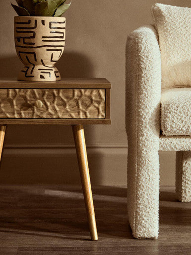 This earthenware planter features an abstract pattern in sand and black contrast. Whether it's for sitting on the floor, home entrance, or filling a space in the corner of the room, this will be a great decorative piece.
