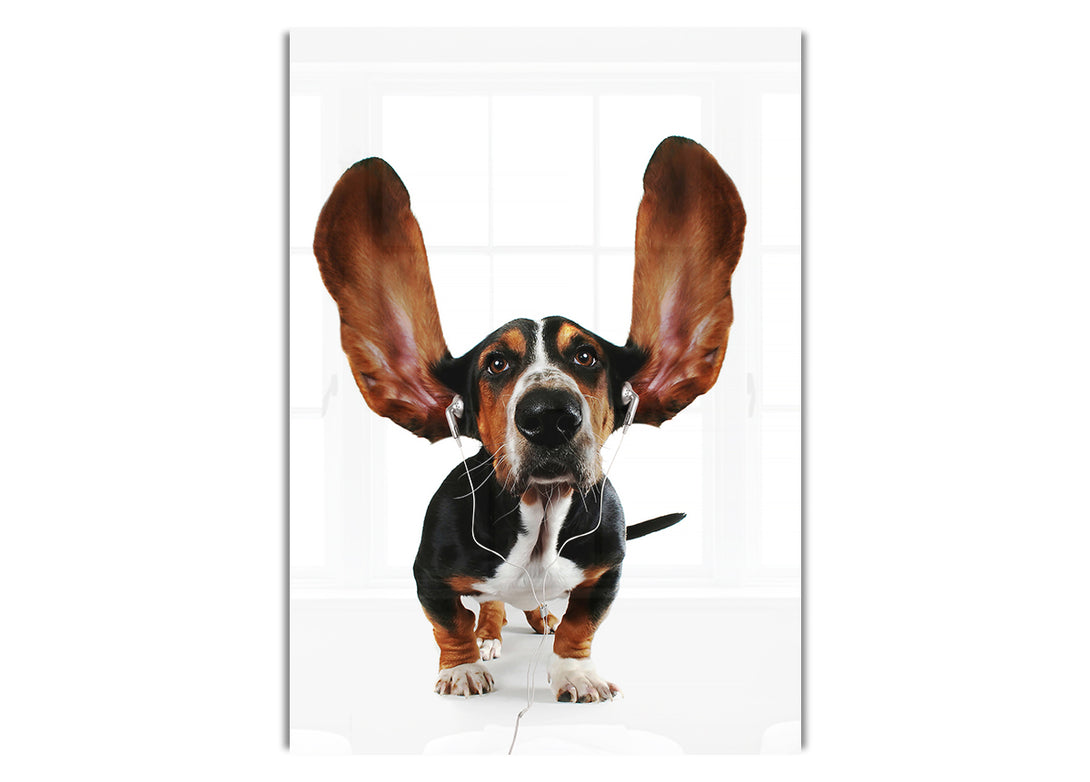 Basset Hound Music acrylic print, UV printed onto 5mm thick acrylic glass. Comes with everything you need to hang on your wall.