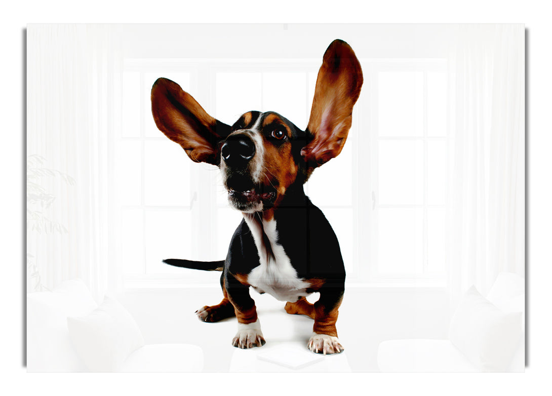 Bassett Hound Ears acrylic print, UV printed onto 5mm thick acrylic glass. Comes with everything you need to hang on your wall.