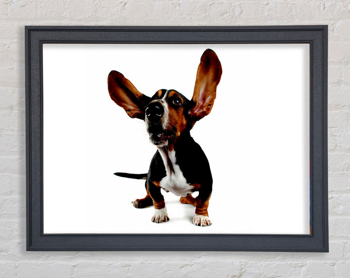 Introducing the charming Bassett Hound Ears Framed Print, a delightful piece of framed art that is sure to bring a touch of whimsy to any space. This lovely print captures the adorable, droopy ears of a Bassett Hound, making it a perfect gift for dog lovers. Available in six sizes ranging from small to oversized, there is an option to suit every wall. Choose from a variety of colors to match your home decor effortlessly. Each piece is handmade with care in the United Kingdom, ensuring exceptional quality. Plus, it's ready to hang, so you can easily add a pop of personality to your room without any hassle.
