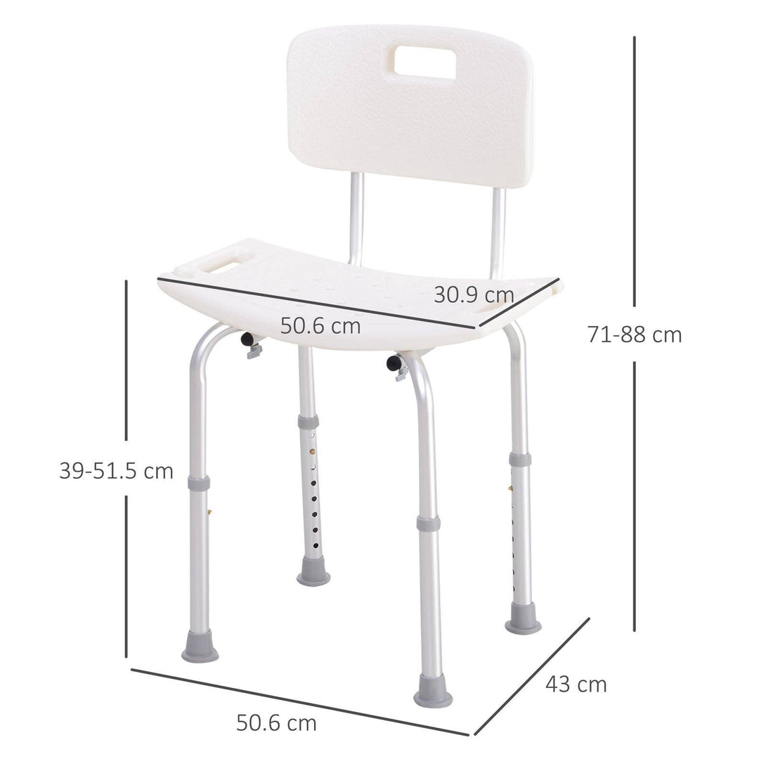 Made for assistance in the shower or bath, this bath chair from HOMCOM is perfect for the elderly or those who need extra help in the bathroom. Made from aluminium, the four legs are resilient to water damage, keeping the chair stable and durable and withstanding up to 136kg in weight. Adjustable in height, this chair helps you find the most comfortable position to sit, with a hard wearing plastic seat with drainage holes to provide years of use. Finished with suction pads on each foot to stop any slipping, it will instantly make life easier in the bathroom.