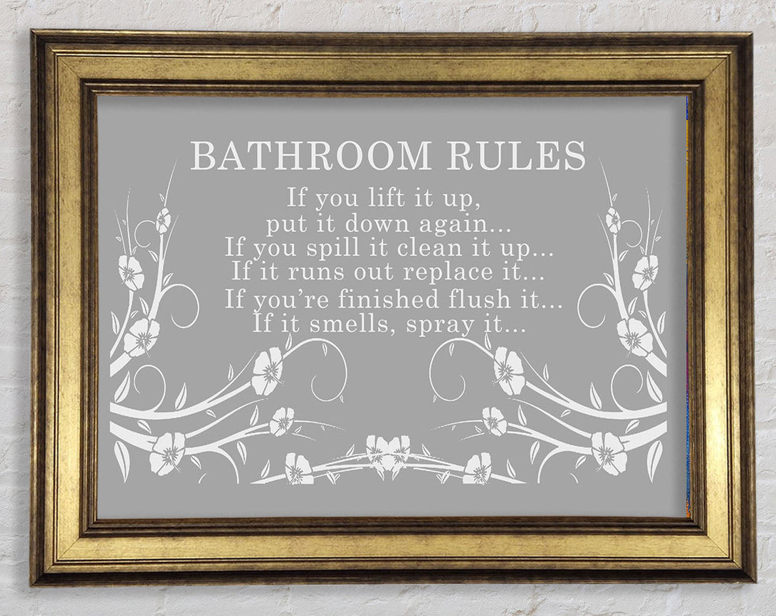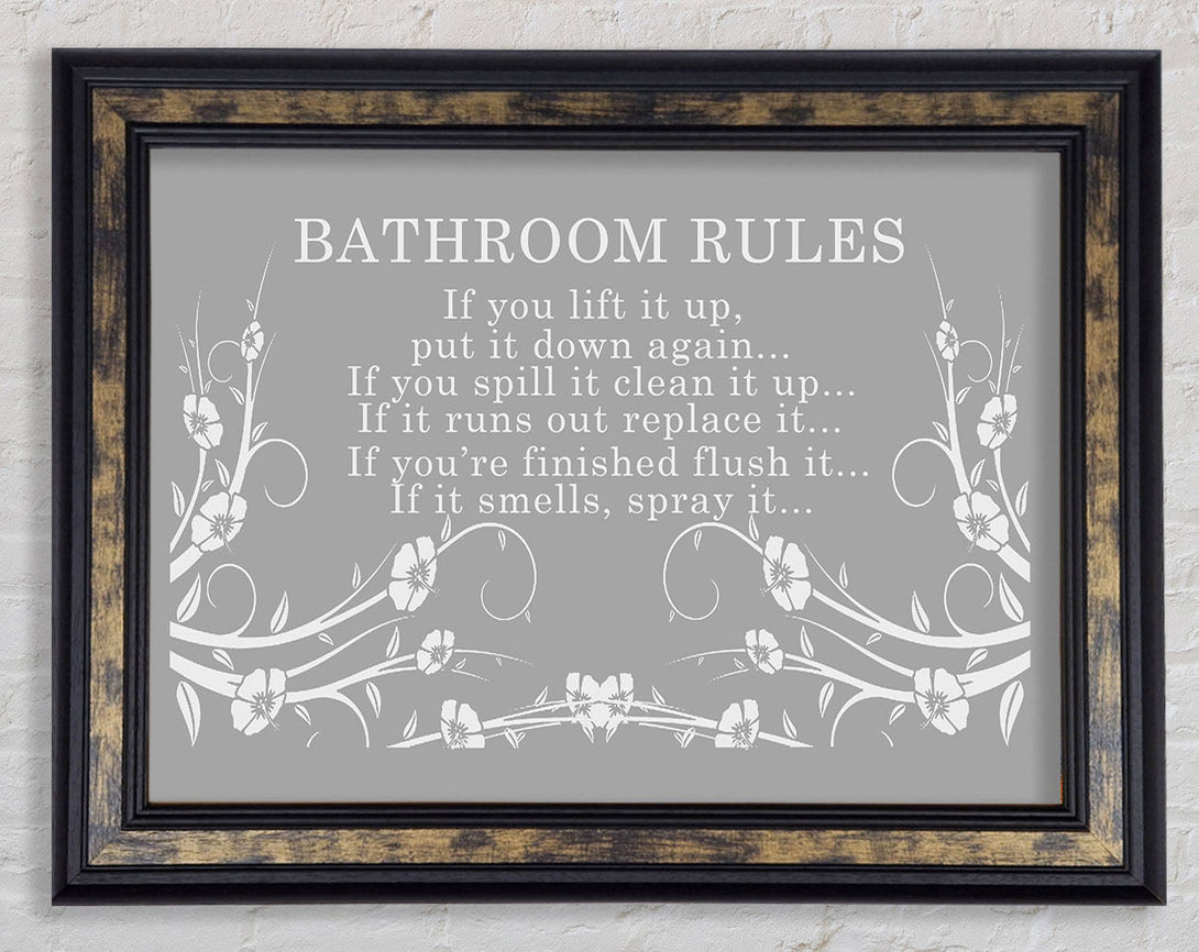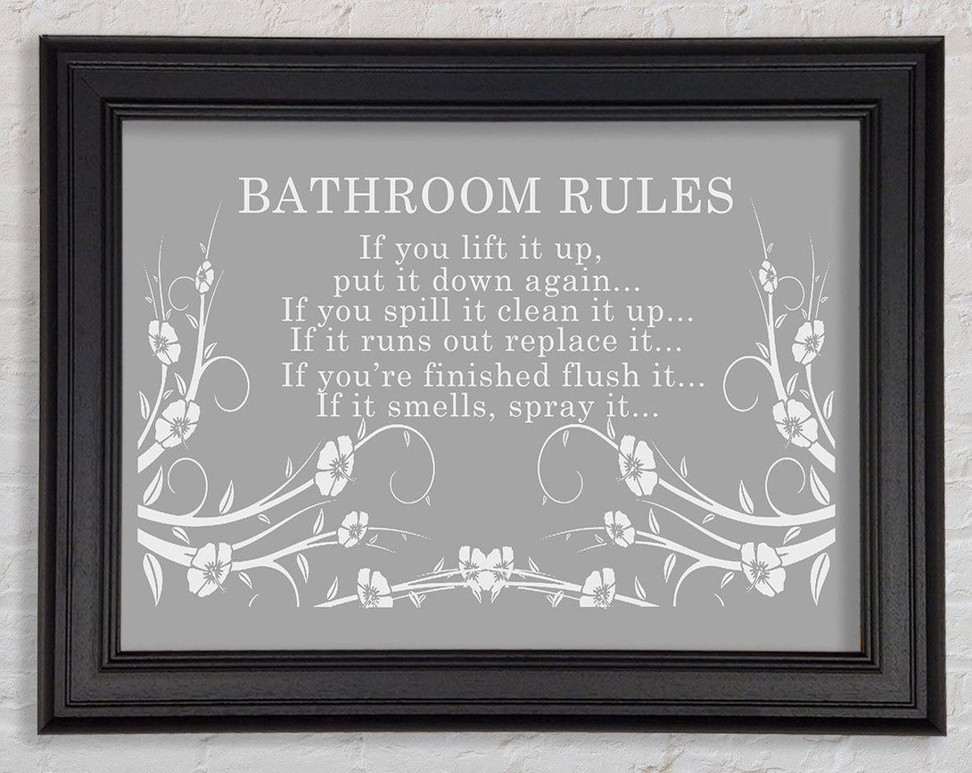 Bathroom Quote Bathroom Rules 2 Grey White Framed Print