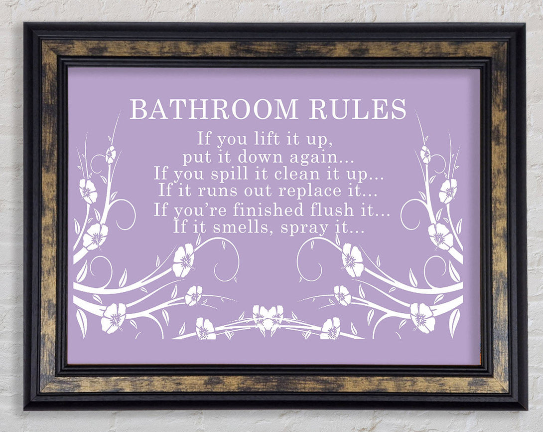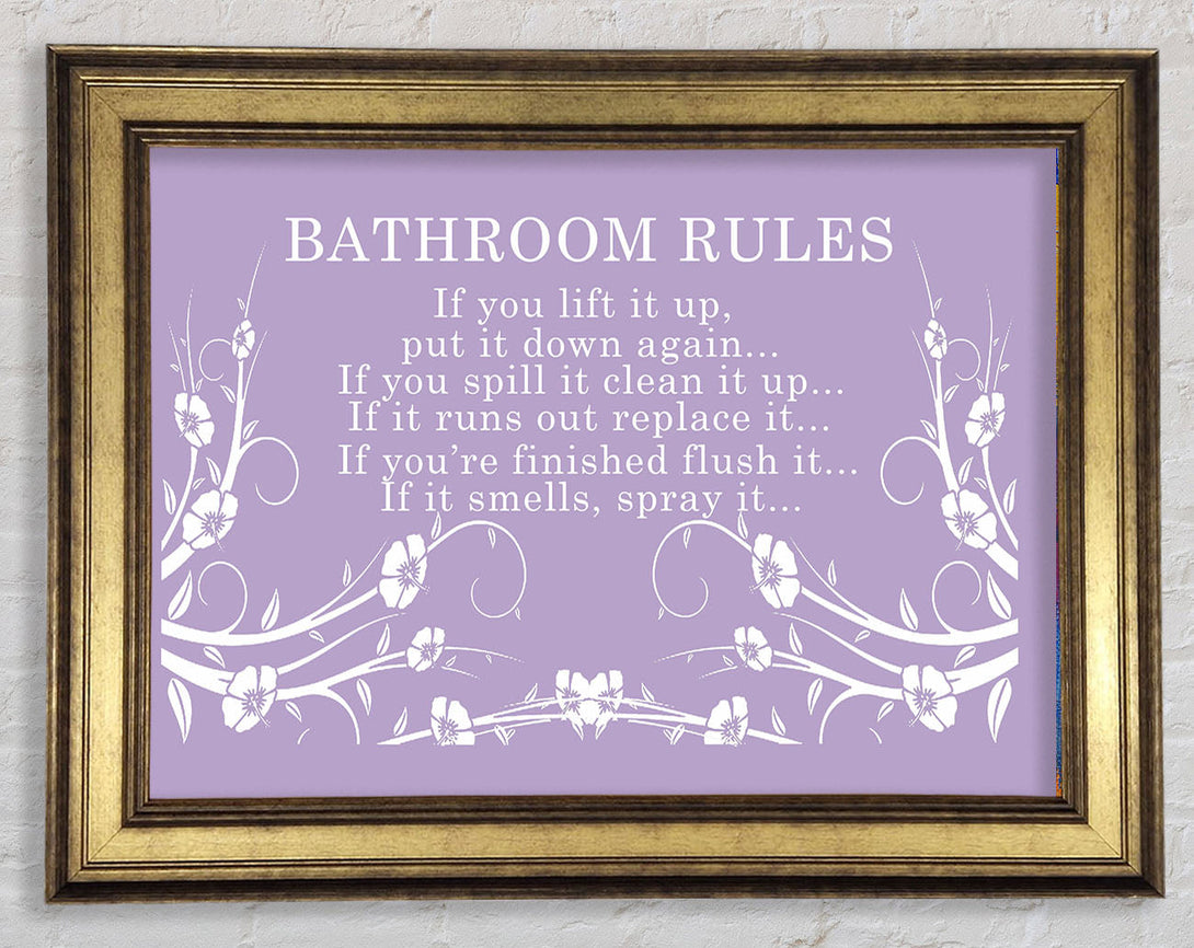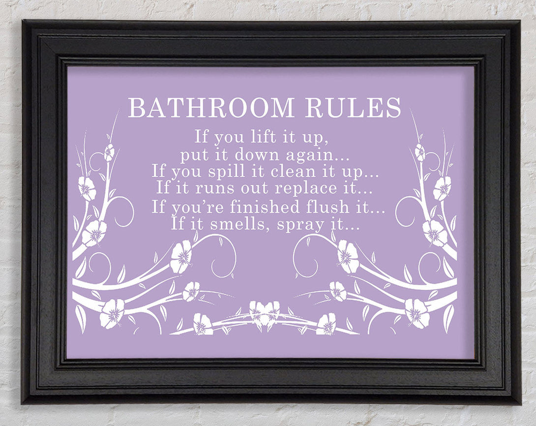Bathroom Quote Bathroom Rules 2 Lilac Framed Print