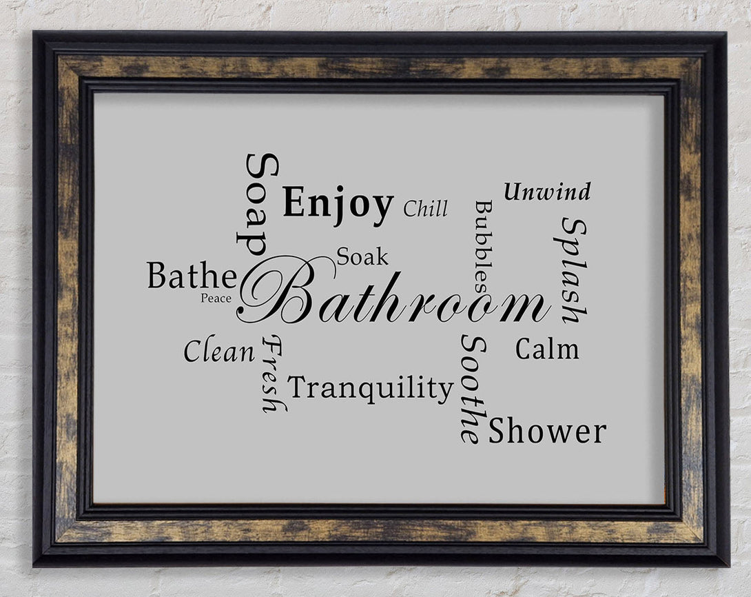Bathroom Quote Bathroom Tranquility Grey Framed Print
