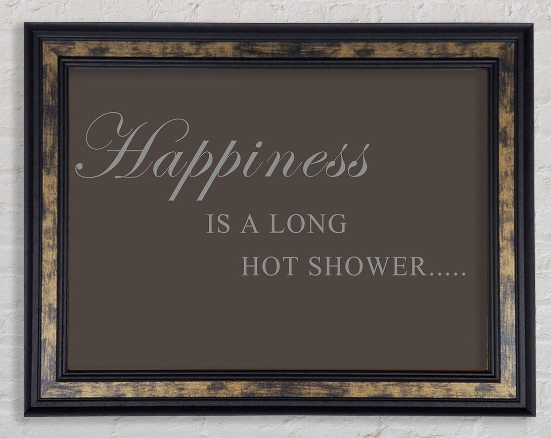 Bathroom Quote Happiness Is A Long Hot Shower Chocolate Framed Print