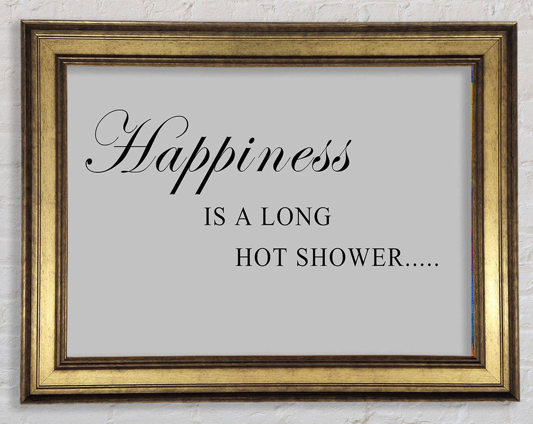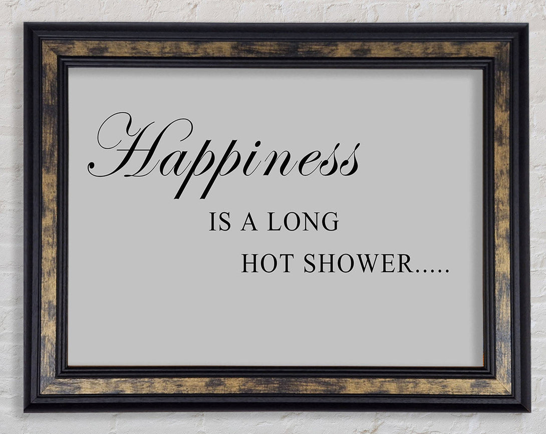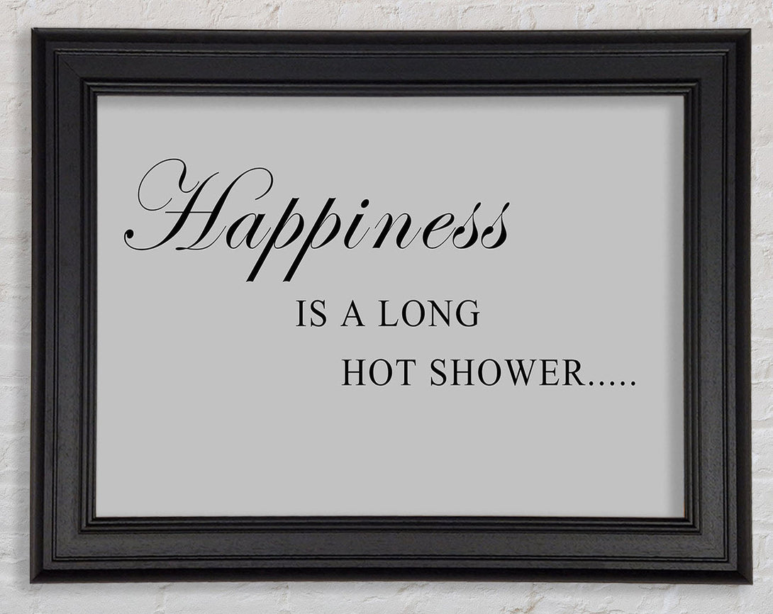 Bathroom Quote Happiness Is A Long Hot Shower Grey Framed Print