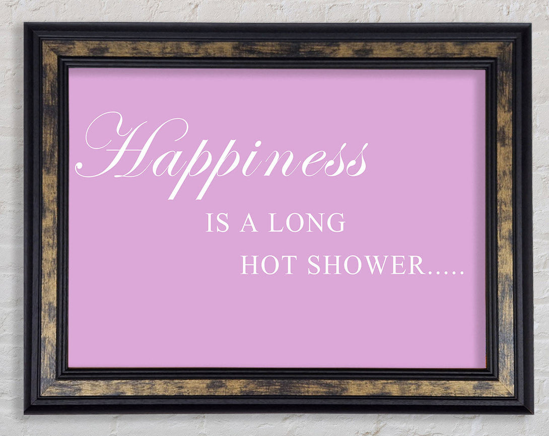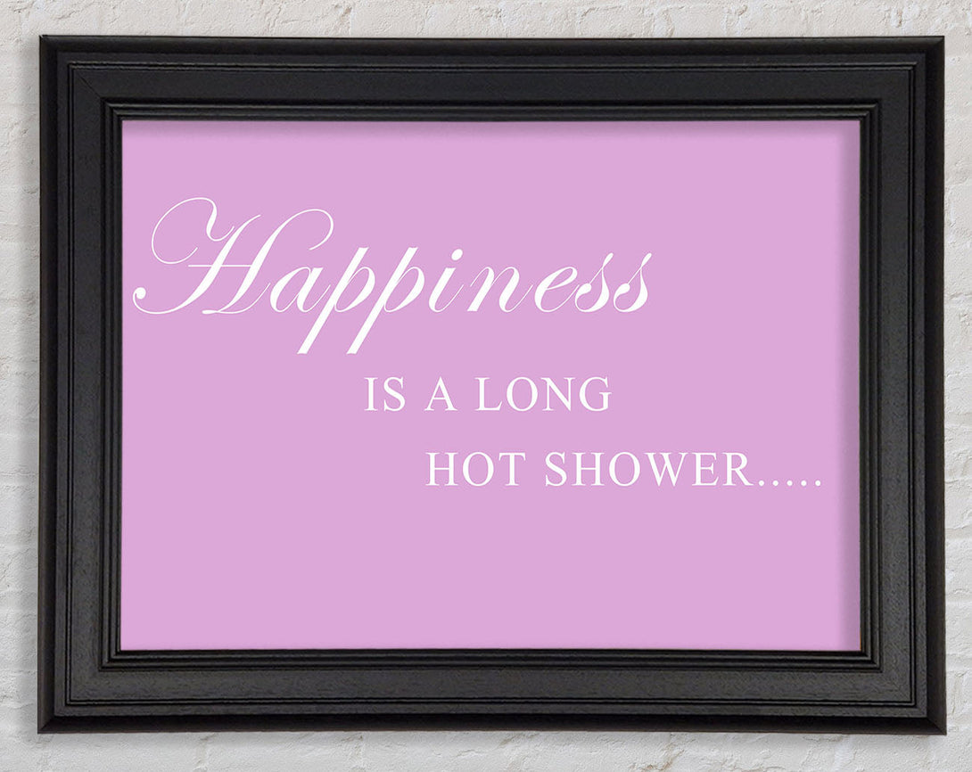 Bathroom Quote Happiness Is A Long Hot Shower Pink Framed Print
