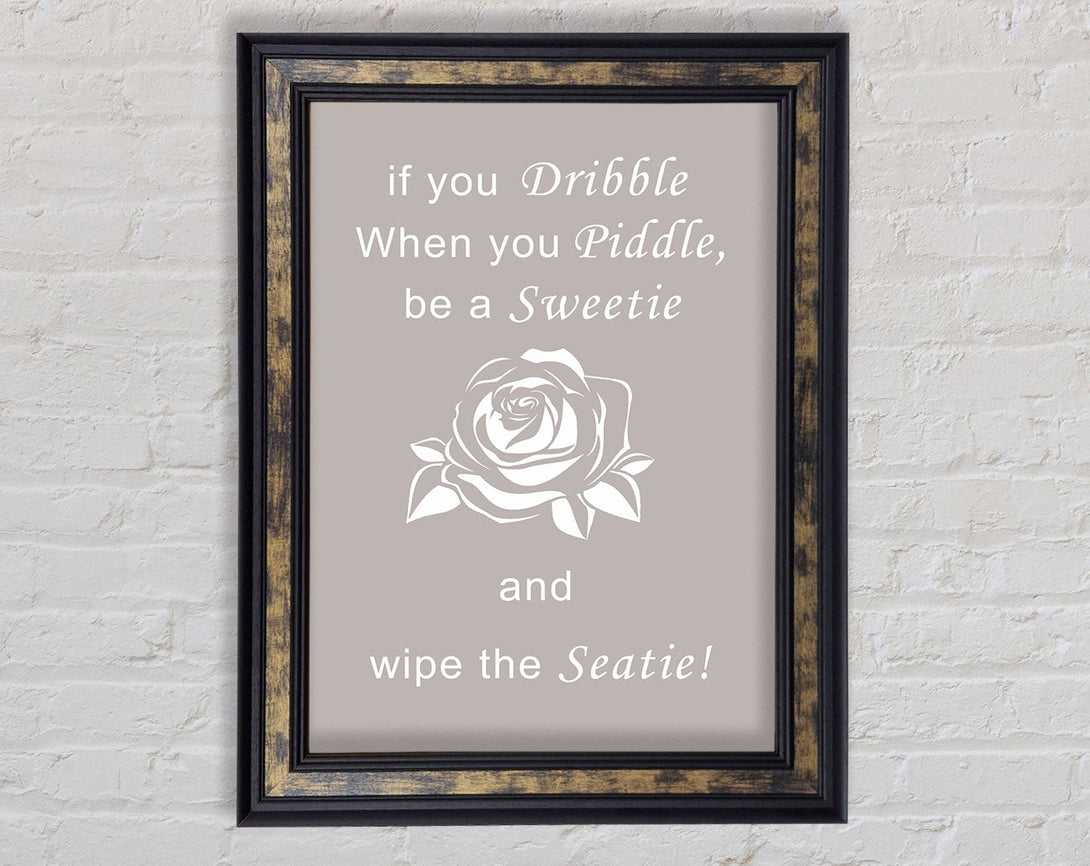 Bathroom Quote If You Dribble Beige Framed Print