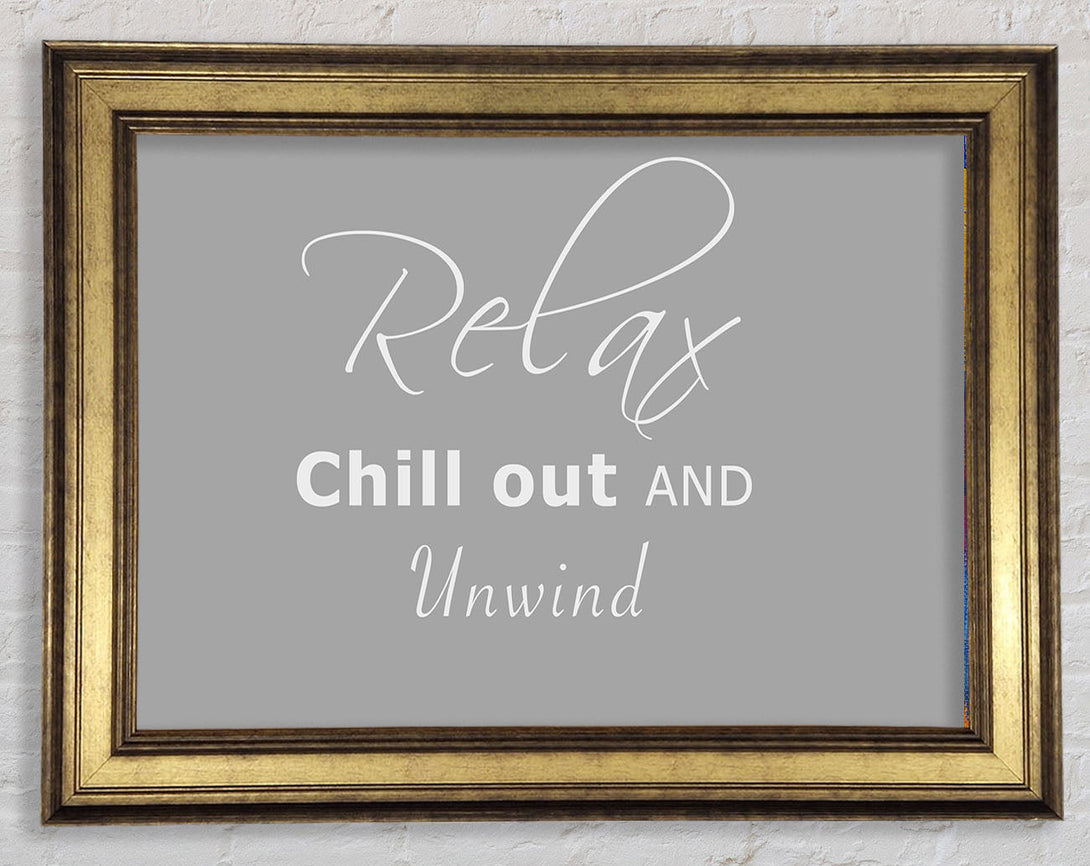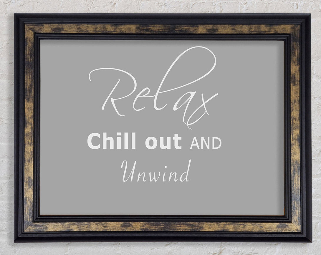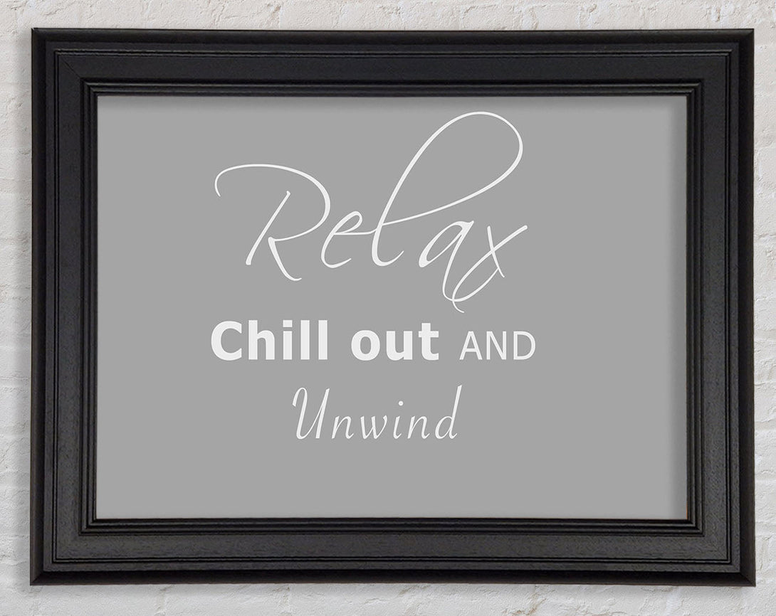 Bathroom Quote Relax Chill Out Grey White Framed Print