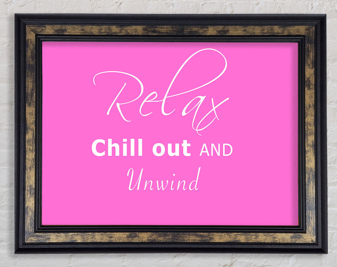 Bathroom Quote Relax Chill Out Vivid Pink Framed Print