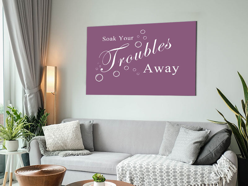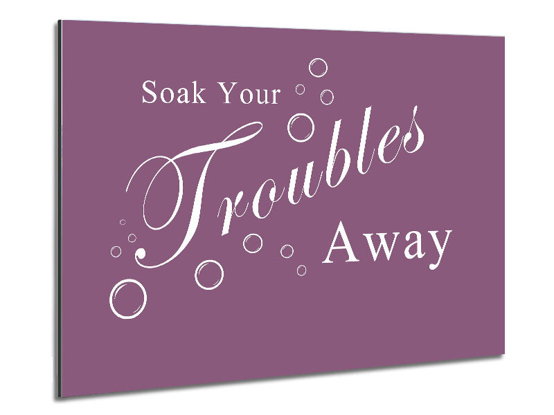 Bathroom Quote Soak Your Troubles Away Dusty Pink Printed on brushed aluminium dibond. A modern way to display art and easy to maintain.