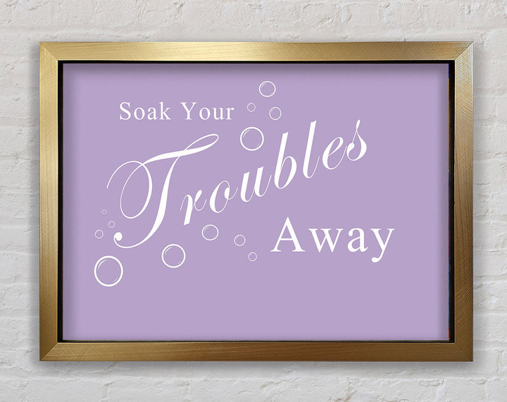 Bathroom Quote Soak Your Troubles Away Lilac Framed Print