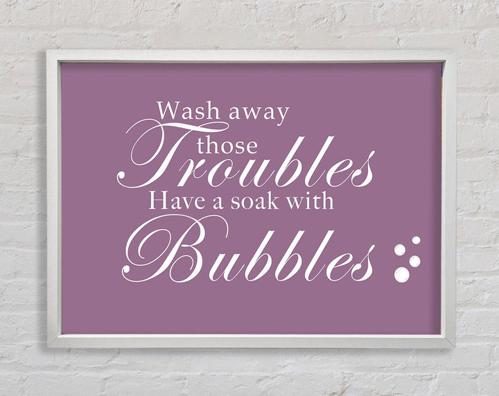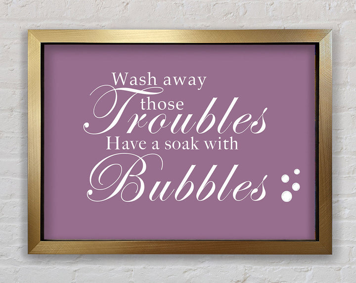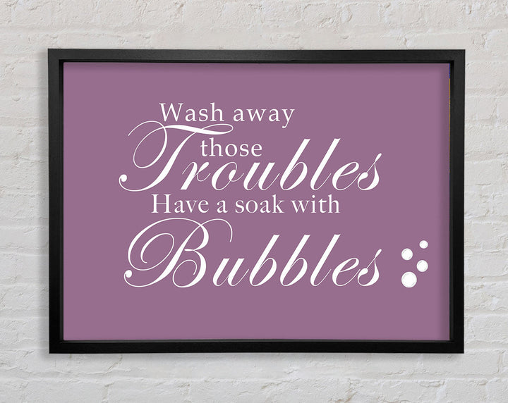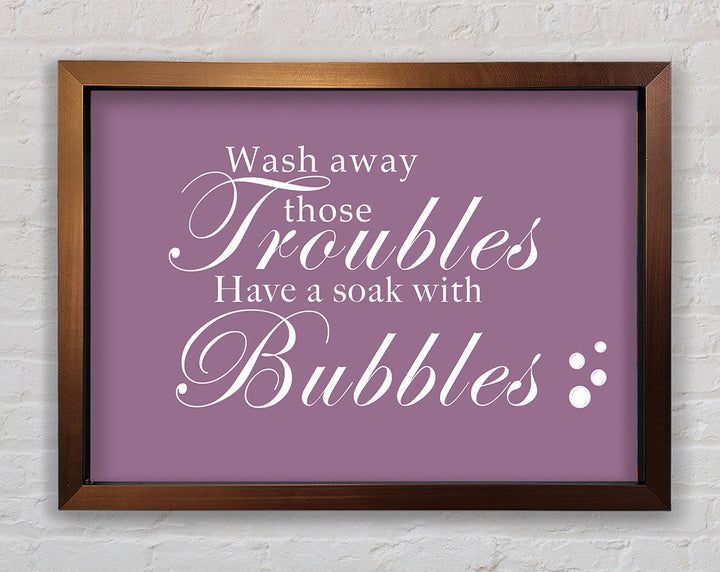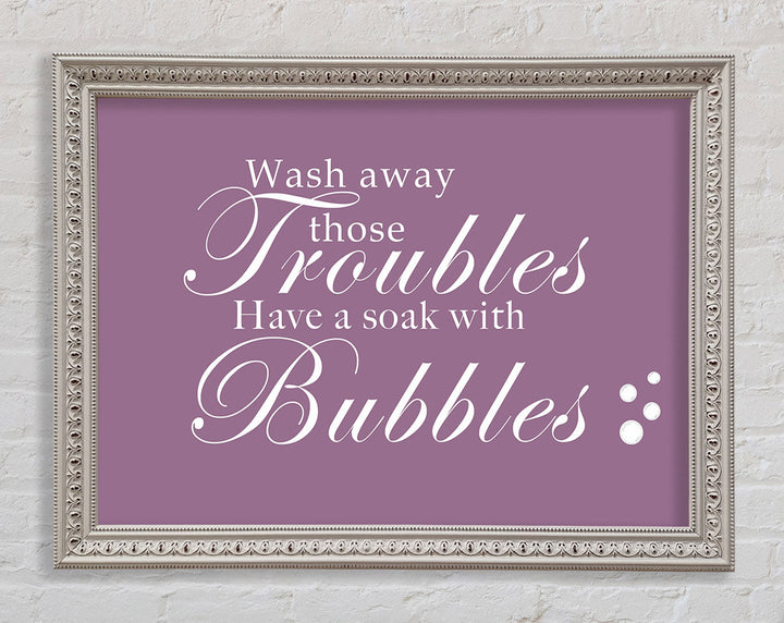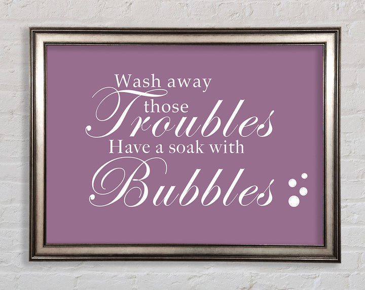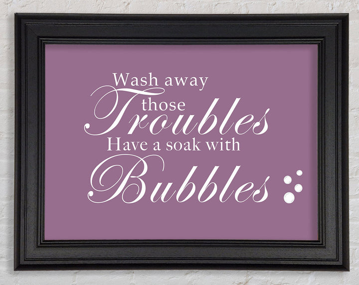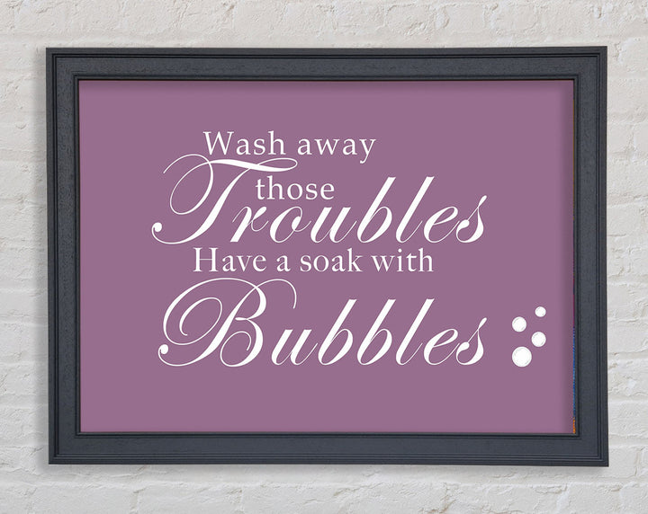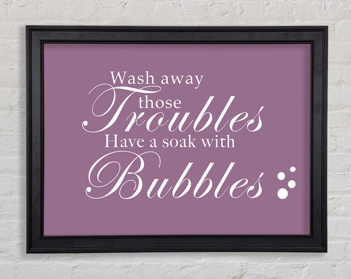 Bathroom Quote Wash Away Those Troubles Bubbles Dusty Pink Framed Print