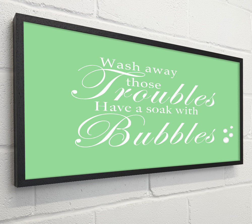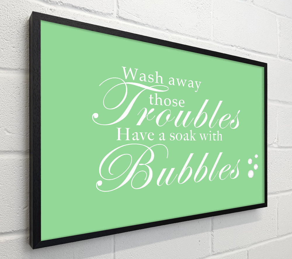 Bathroom Quote Wash Away Those Troubles Bubbles Green