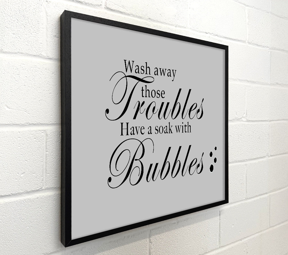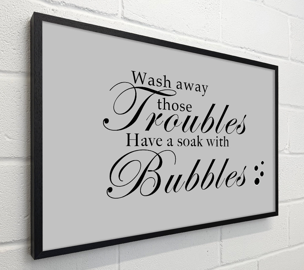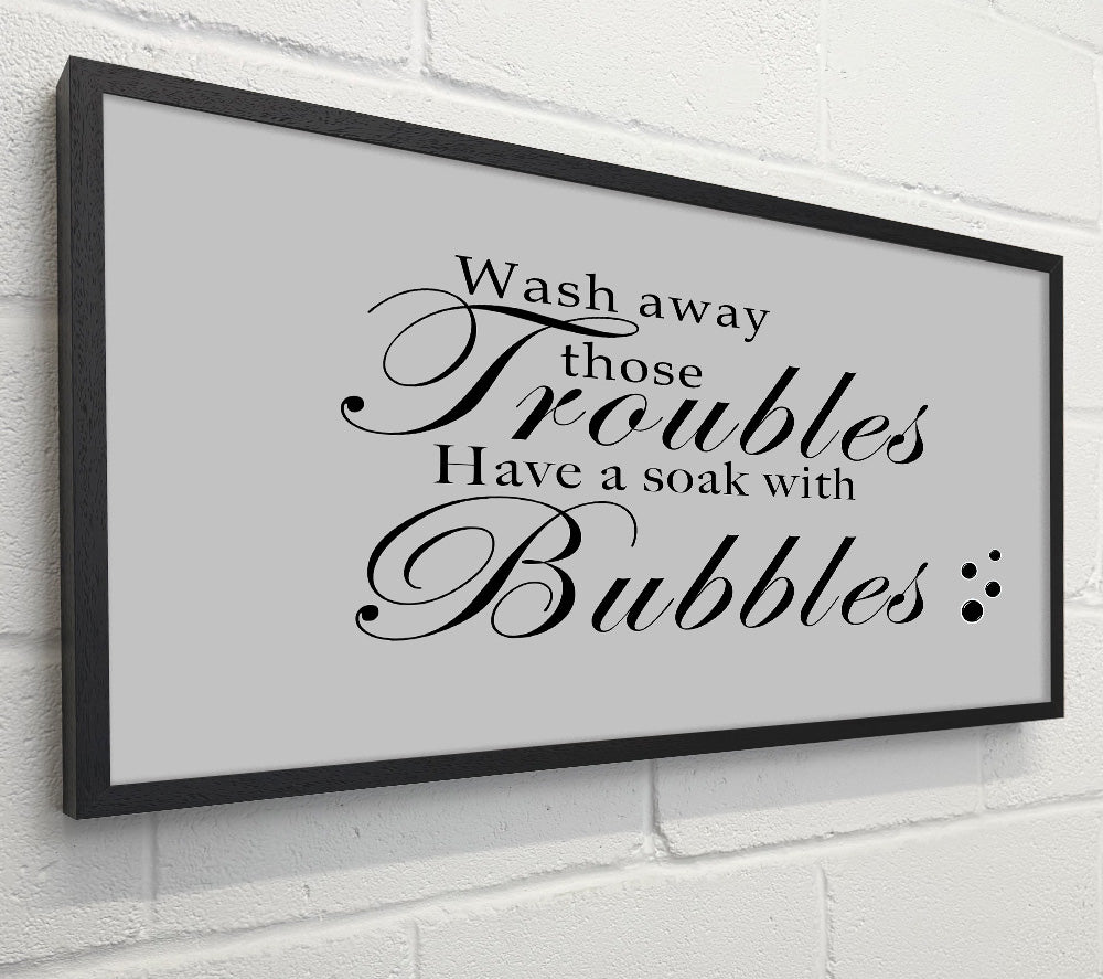 Bathroom Quote Wash Away Those Troubles Bubbles Grey