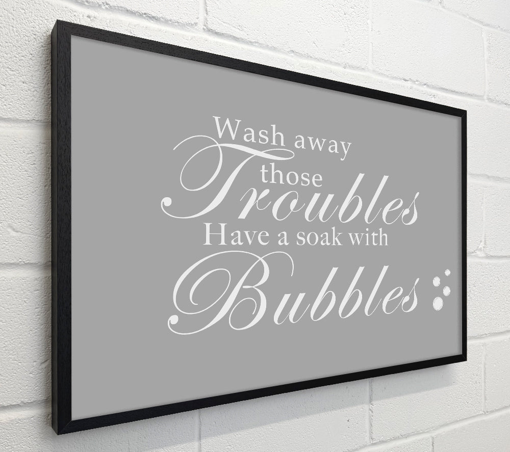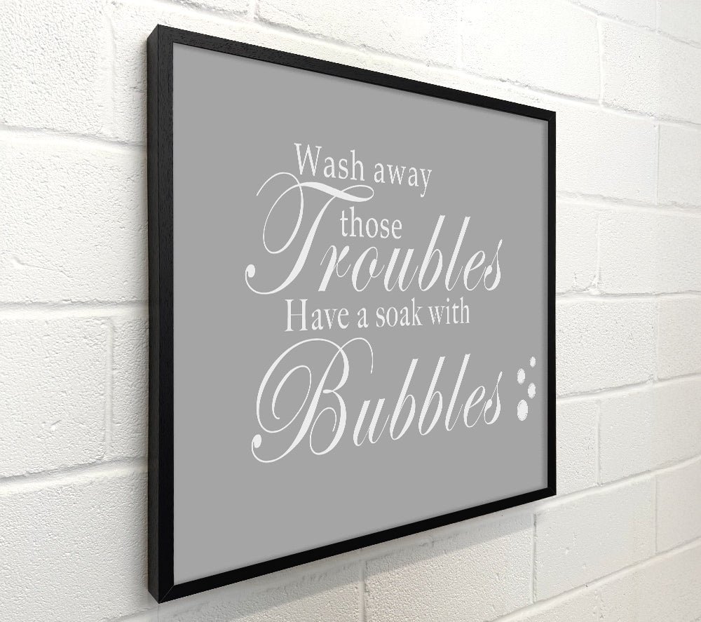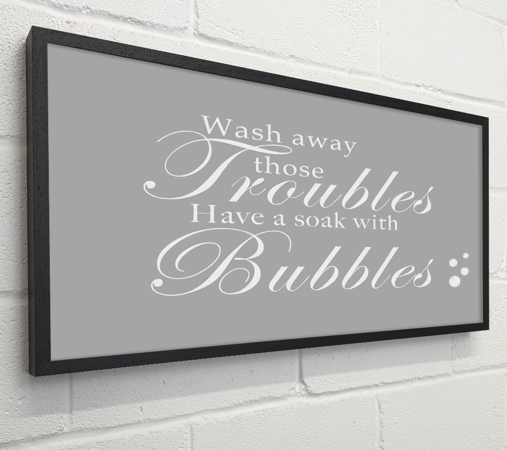 Bathroom Quote Wash Away Those Troubles Bubbles Grey White
