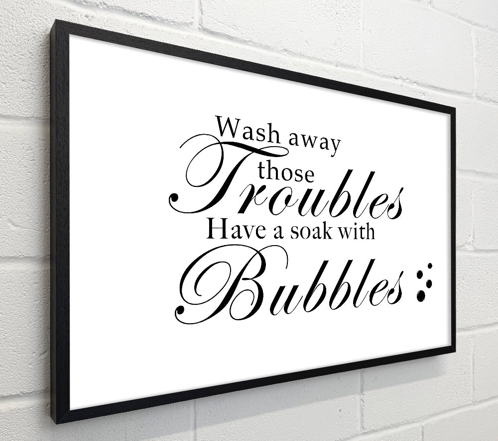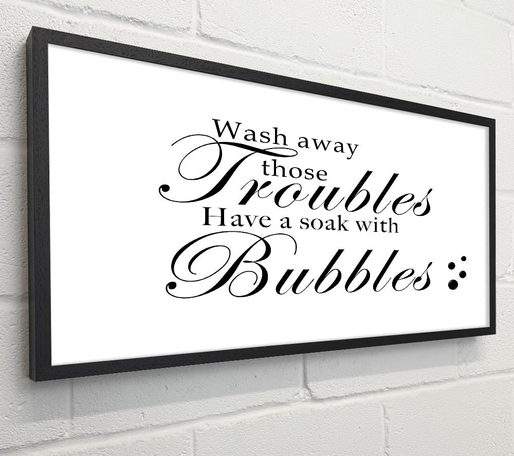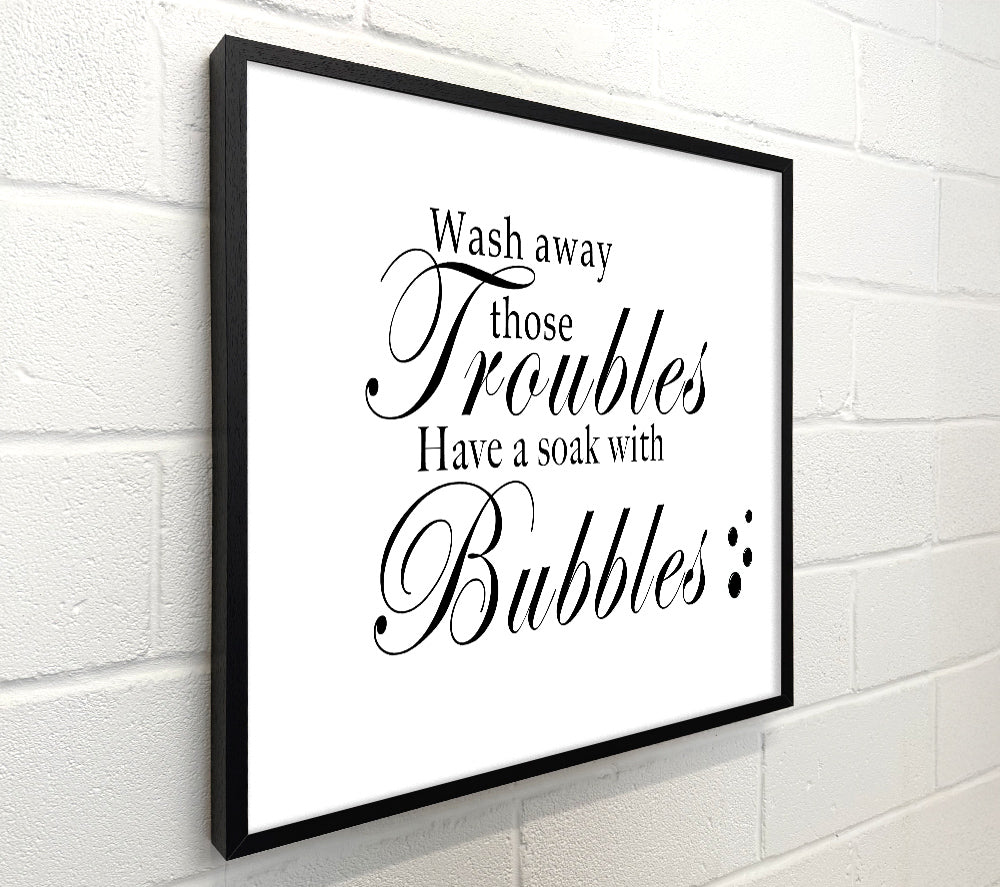 Bathroom Quote Wash Away Those Troubles Bubbles White