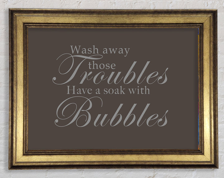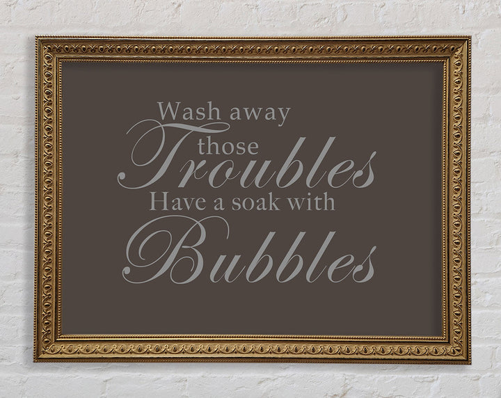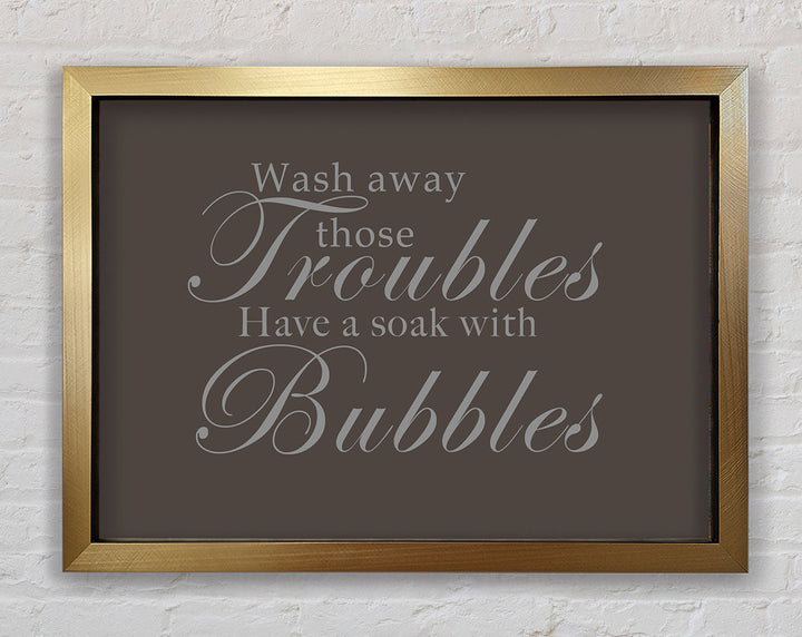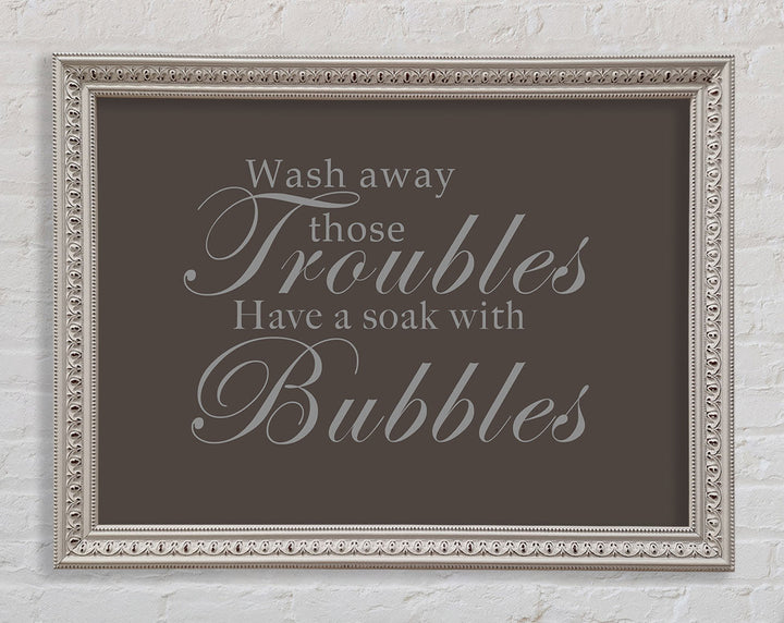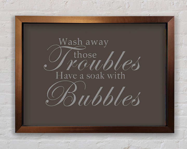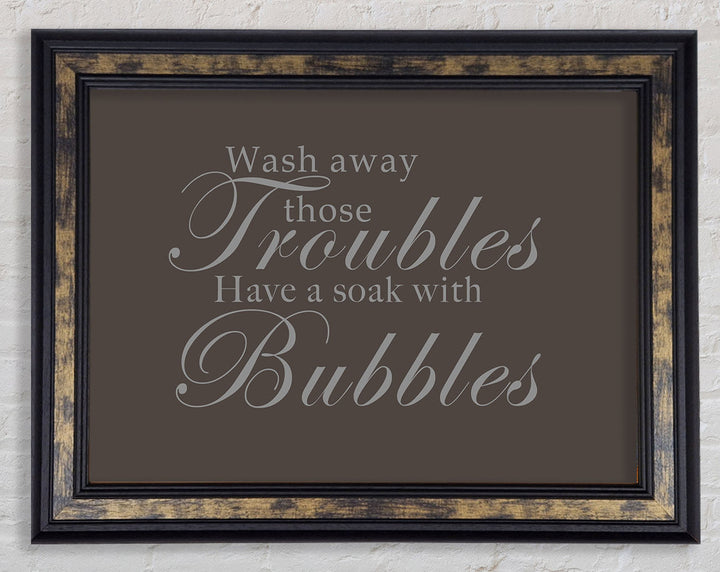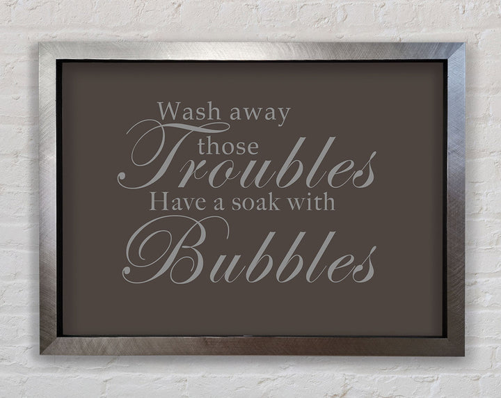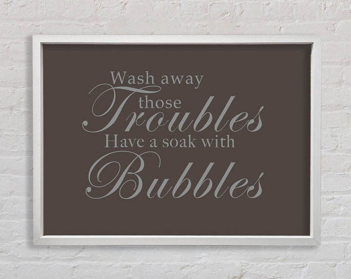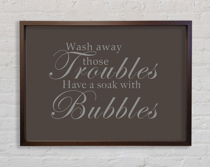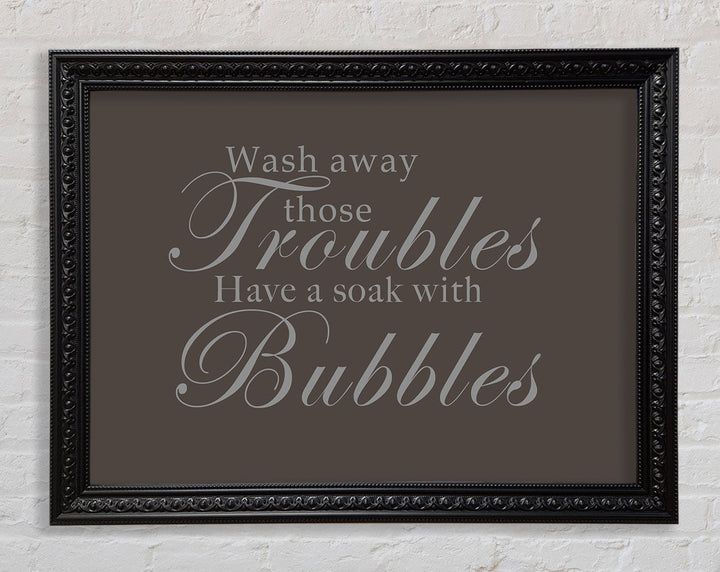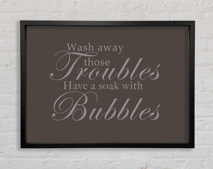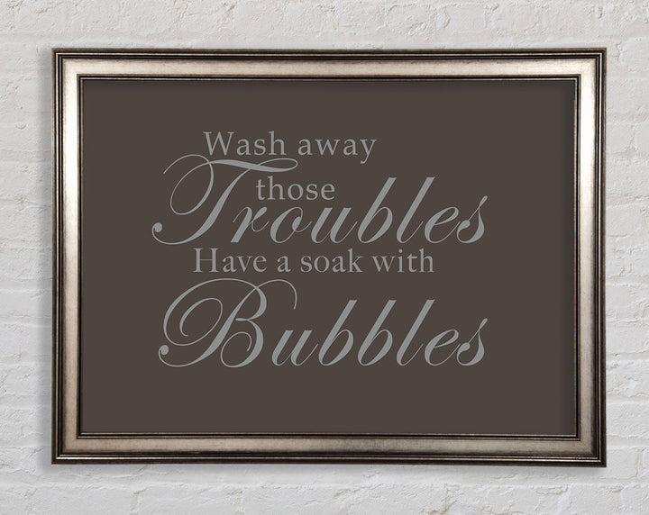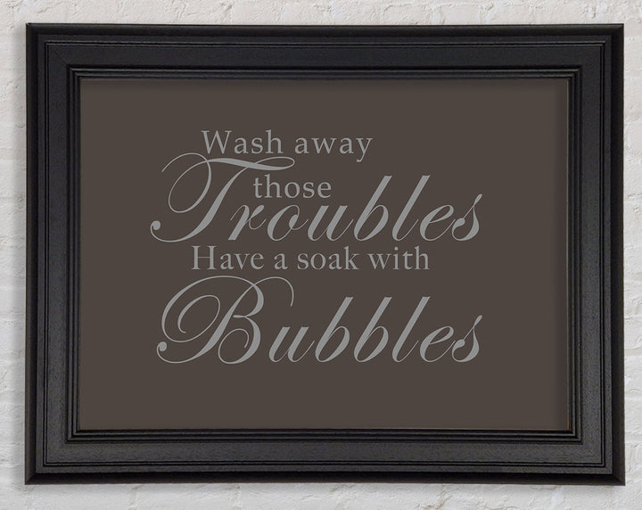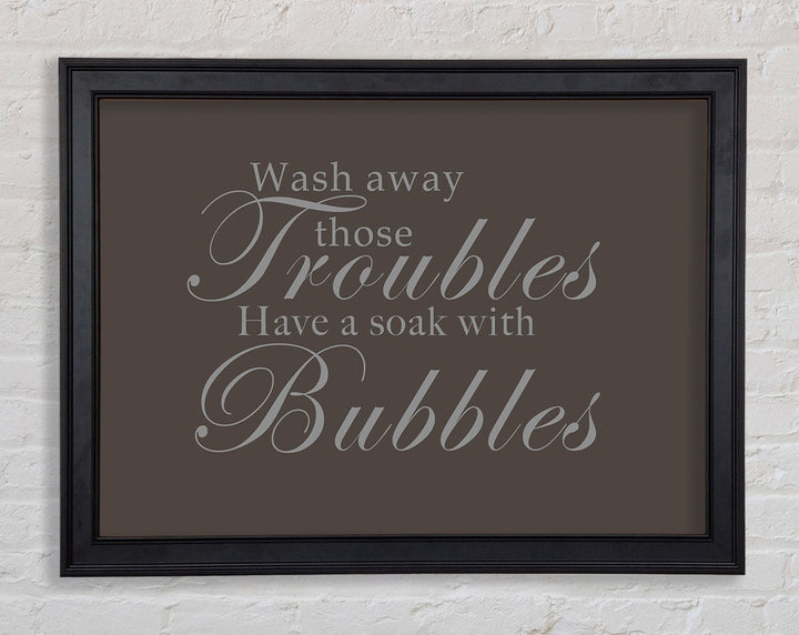 Bathroom Quote Wash Away Those Troubles Chocolate Framed Print