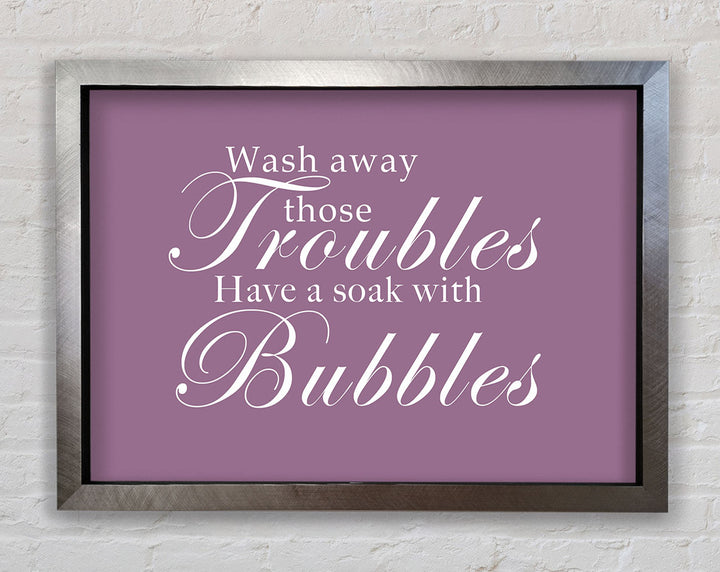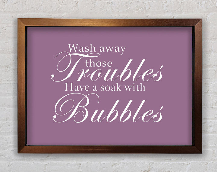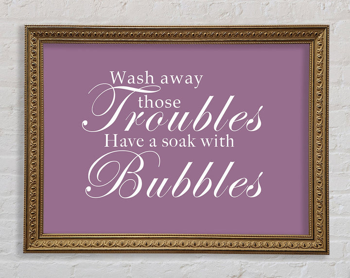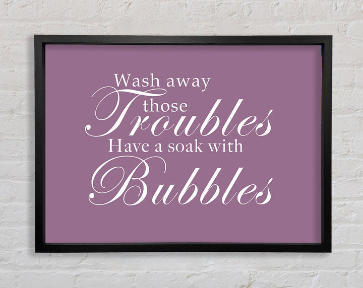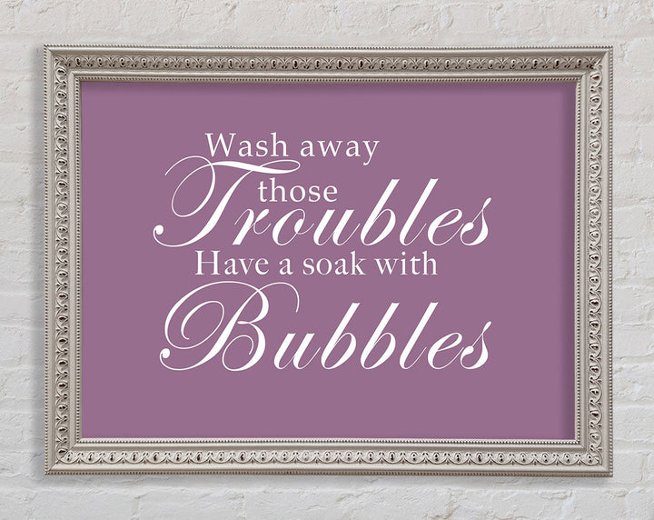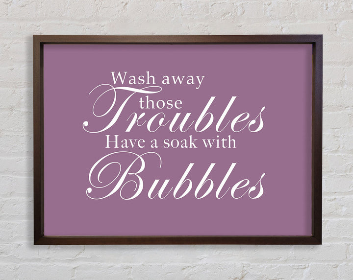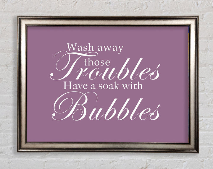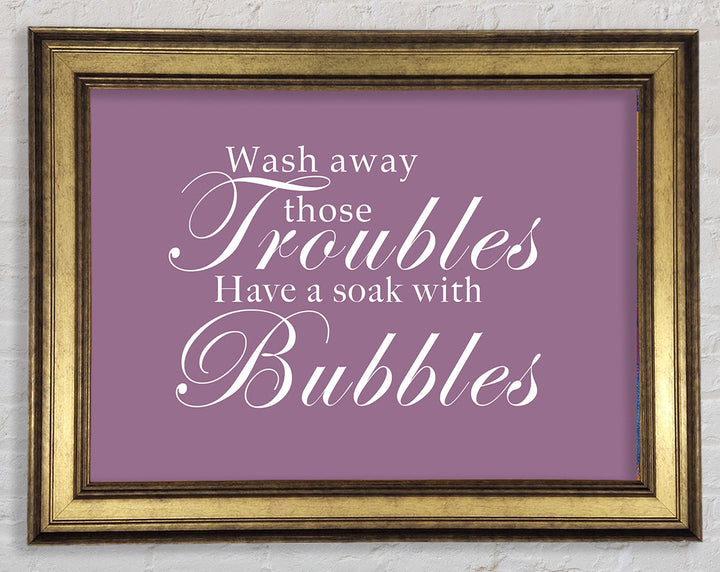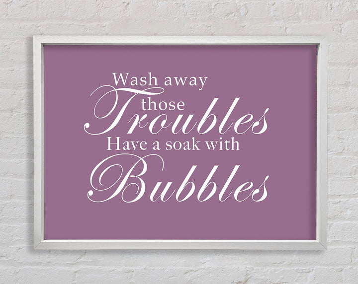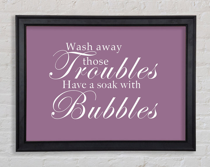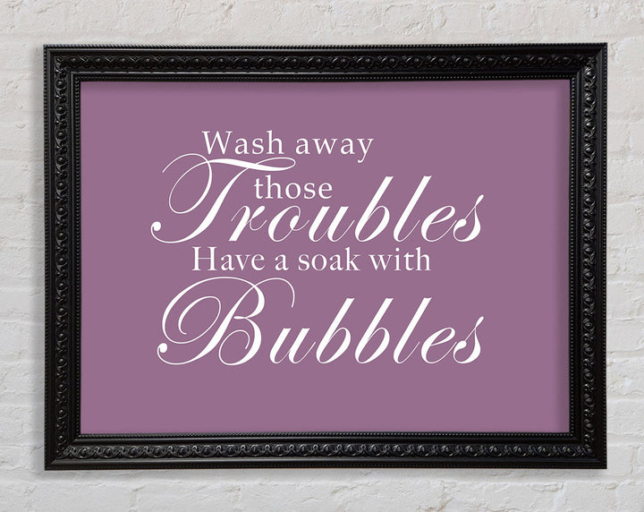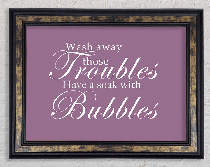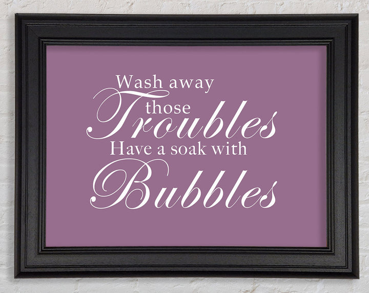 Bathroom Quote Wash Away Those Troubles Dusty Pink Framed Print