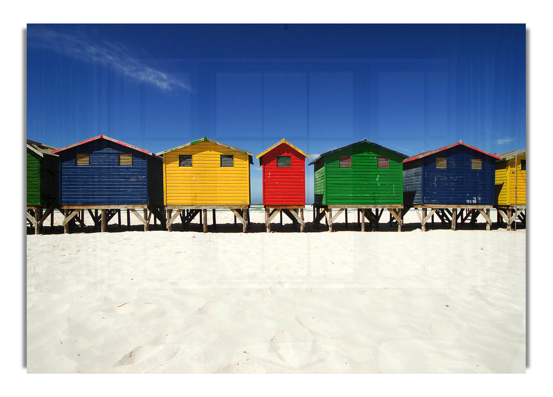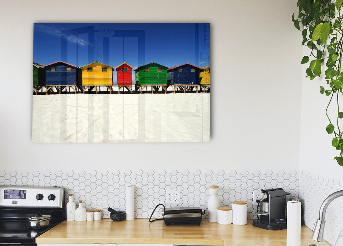 Beach Hut Skies acrylic print, UV printed onto 5mm thick acrylic glass. Comes with everything you need to hang on your wall.