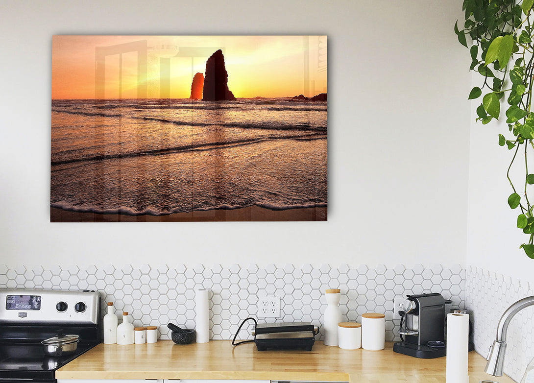 Beach Rock Sunrise acrylic print, UV printed onto 5mm thick acrylic glass. Comes with everything you need to hang on your wall.
