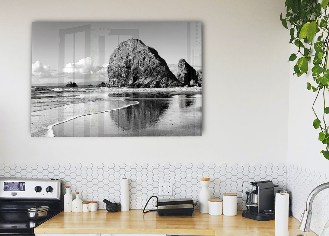 Beach Rocks B~w acrylic print, UV printed onto 5mm thick acrylic glass. Comes with everything you need to hang on your wall.