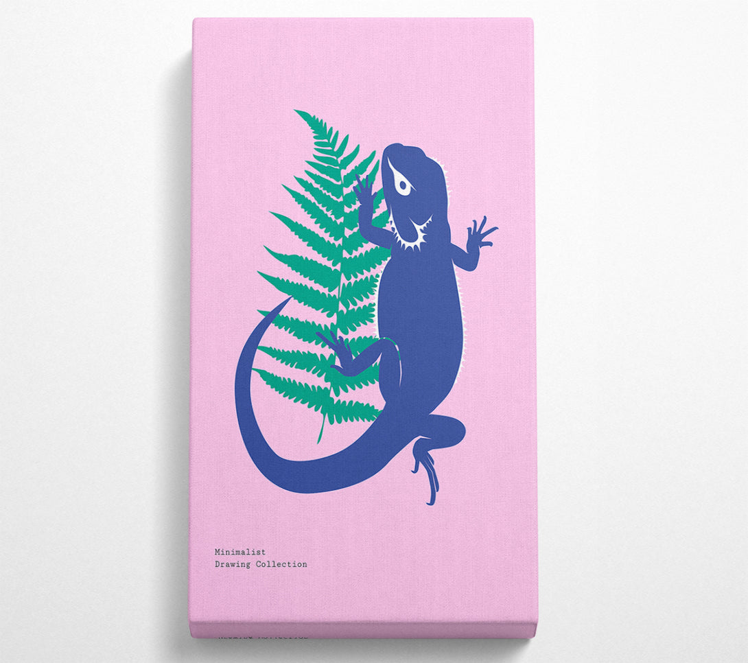 Bearded Dragon And Fern wide canvas, printed on coated polyester canvas. Mounted on to a 44mm box frame, ready to hang.