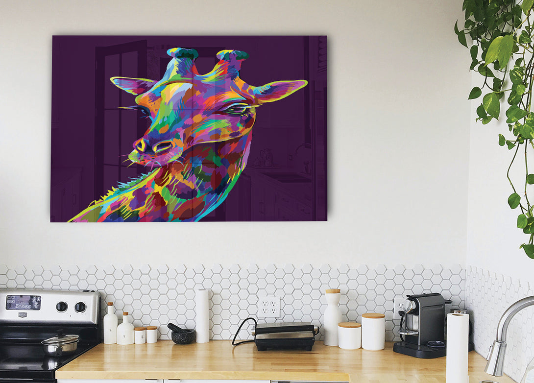 Beautiful Giraffe acrylic print, UV printed onto 5mm thick acrylic glass. Comes with everything you need to hang on your wall.