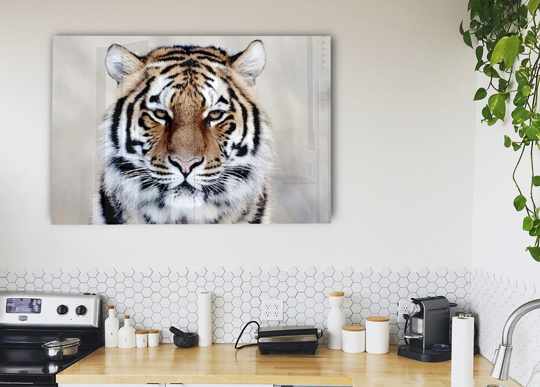 Beautiful Tiger acrylic print, UV printed onto 5mm thick acrylic glass. Comes with everything you need to hang on your wall.