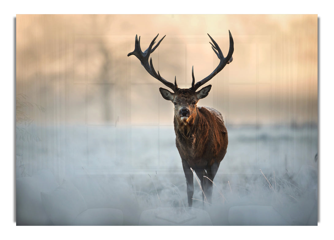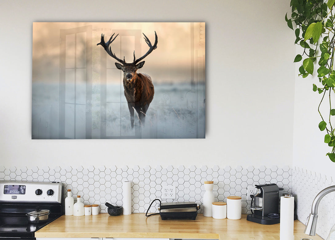 Beautiful Winter Stag acrylic print, UV printed onto 5mm thick acrylic glass. Comes with everything you need to hang on your wall.