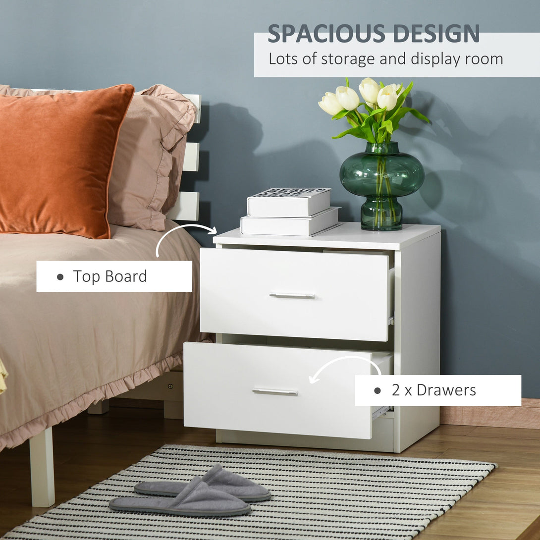 With its modern boxy shape, this bedside table is sure to bring in a lux feel into your nightly routine. It's formed of two drawers, provides ample storage space for keeping your magazines, books, remote controls, and other small items well organized and within reach. Using particle board for the structure, it is solid and tough to withstand everyday use and easy to clean with a damp cloth. A piece to adore for years to come.