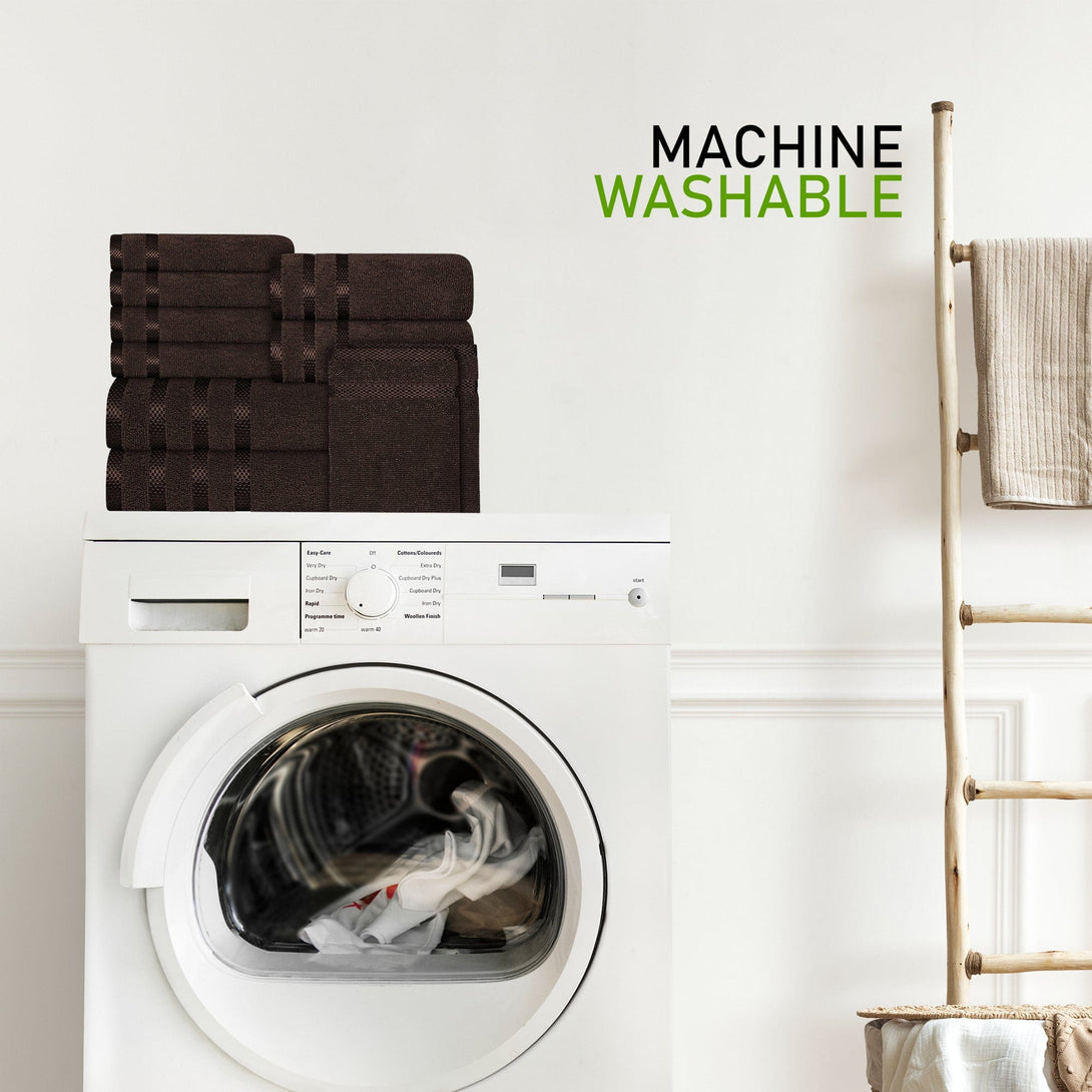 Belmont Viscose Stripe Brown Towels 100% Cotton Hotel Quality Super Absorbent 10 Piece Bale Set, 4 Hand Towel & 12 Face Cloths by OLIVIA ROCCO