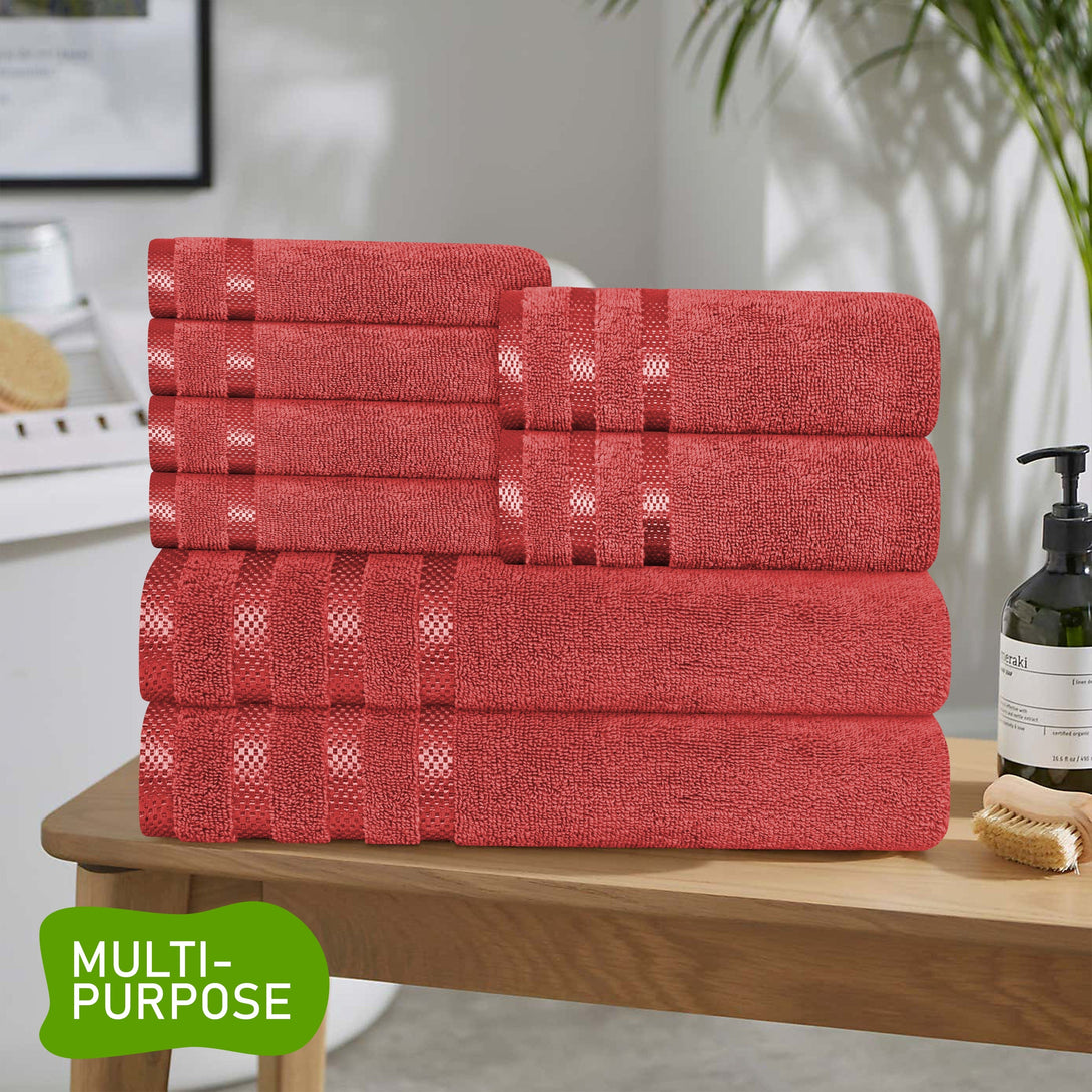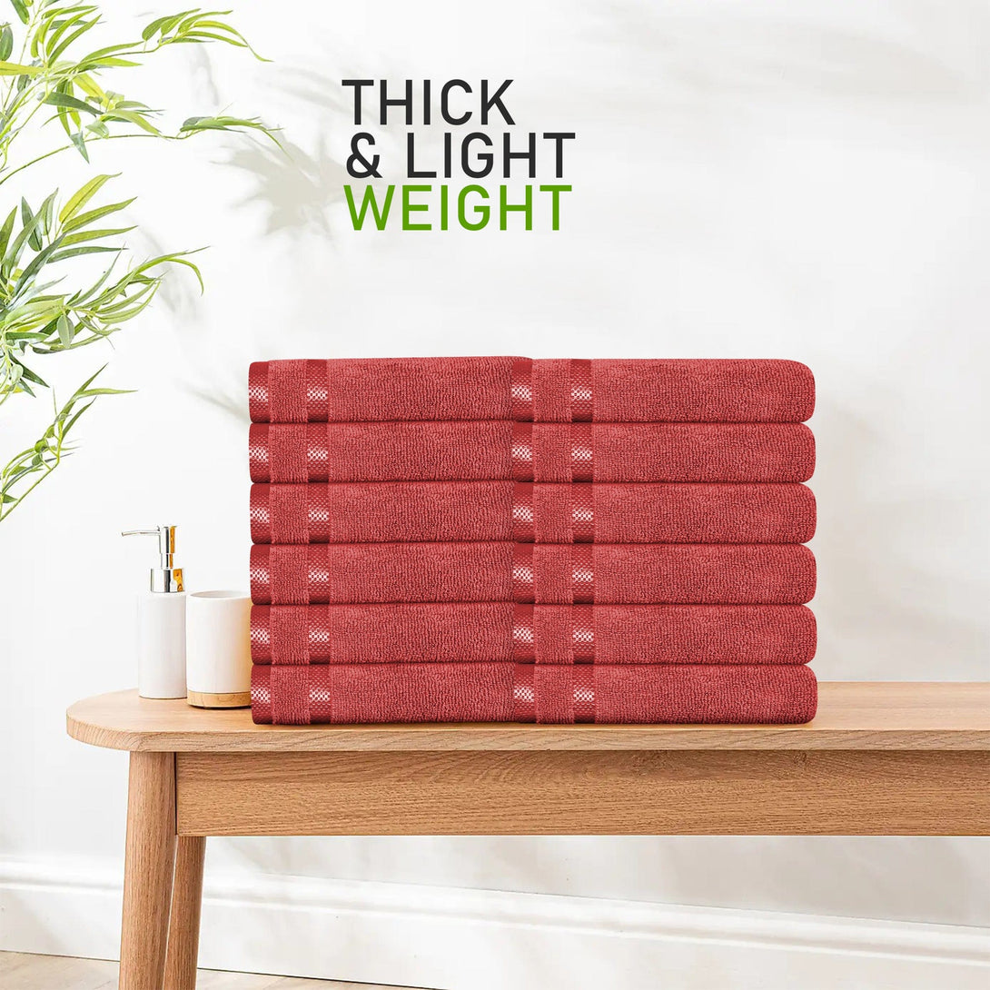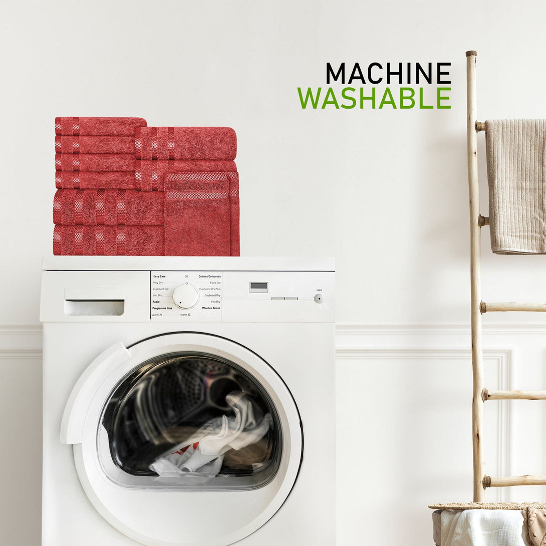 Belmont Viscose Stripe Red Towels 100% Cotton Hotel Quality Super Absorbent 10 Piece Bale Set, 4 Hand Towel & 12 Face Cloths by OLIVIA ROCCO