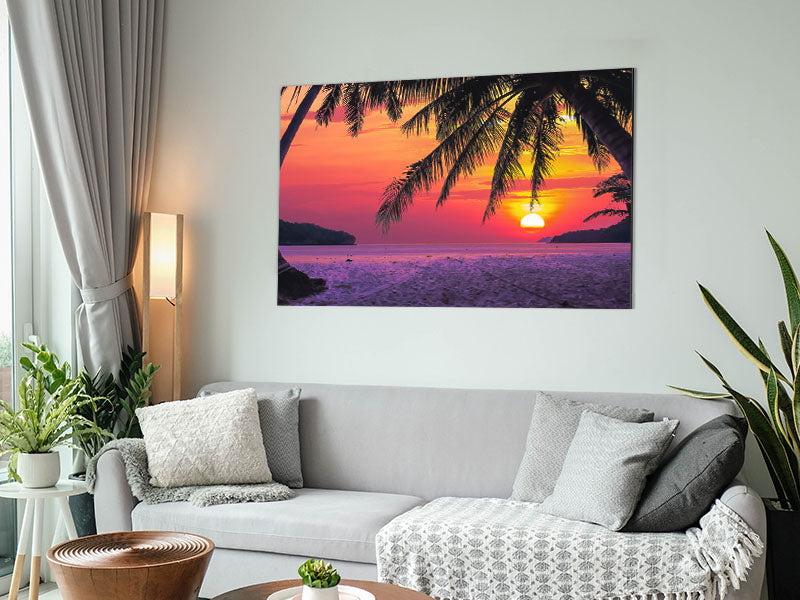 Between The Palm Trees Printed on brushed aluminium dibond. A modern way to display art and easy to maintain.