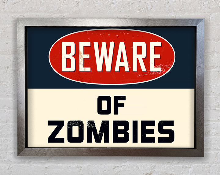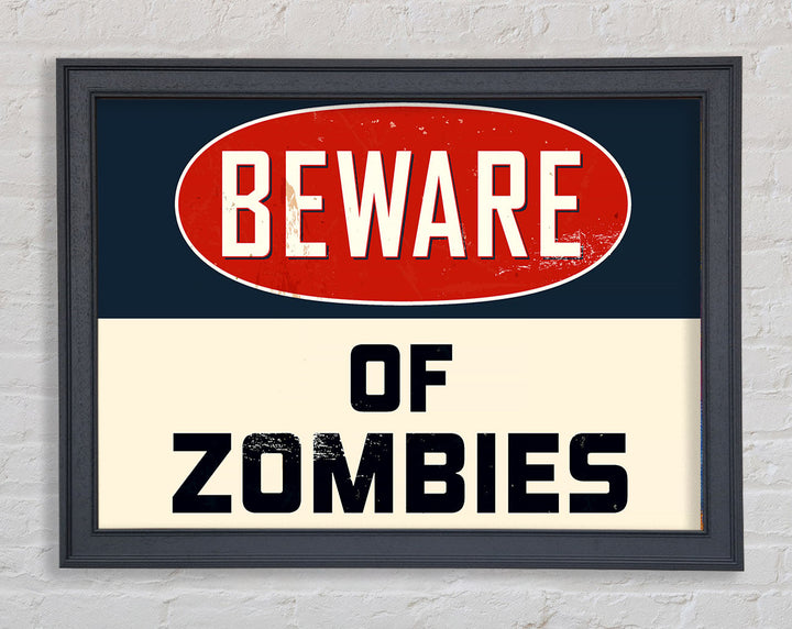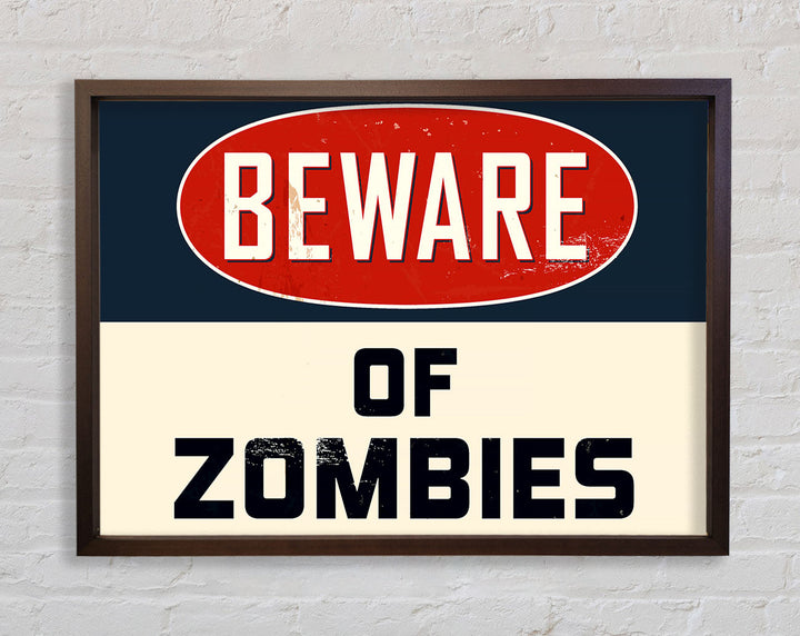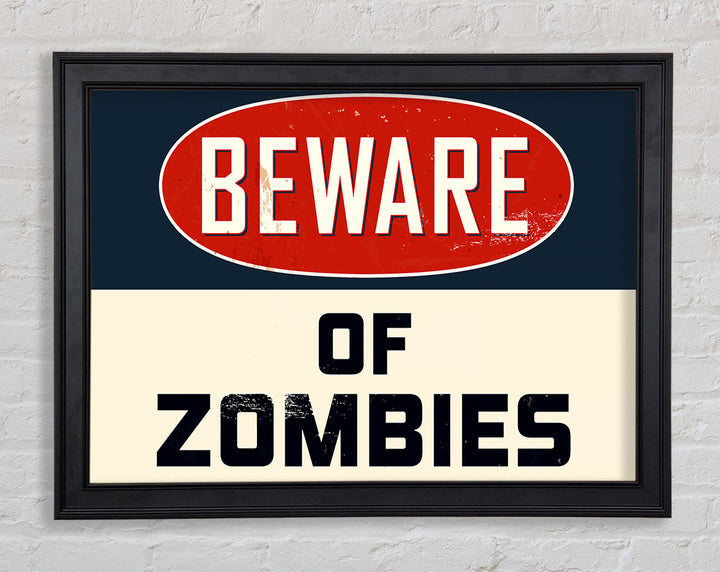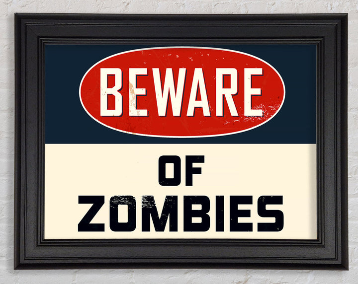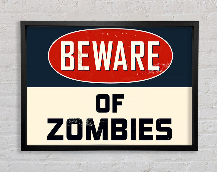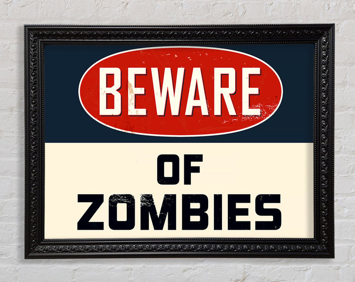 Introducing the "Beware Of Zombies" Framed Print, a unique piece of framed art that brings a touch of fun and spookiness to any space. This standout artwork is available in six sizes, ranging from small to oversized, ensuring you find the perfect fit for your room. With a variety of colors to choose from, you can easily match or contrast it with your existing decor. Each print is handmade in the United Kingdom, highlighting top-quality craftsmanship and attention to detail. The "Beware Of Zombies" Framed Print comes ready to hang, making it a hassle-free addition to your home. Add a quirky and stylish warning to your walls today!
