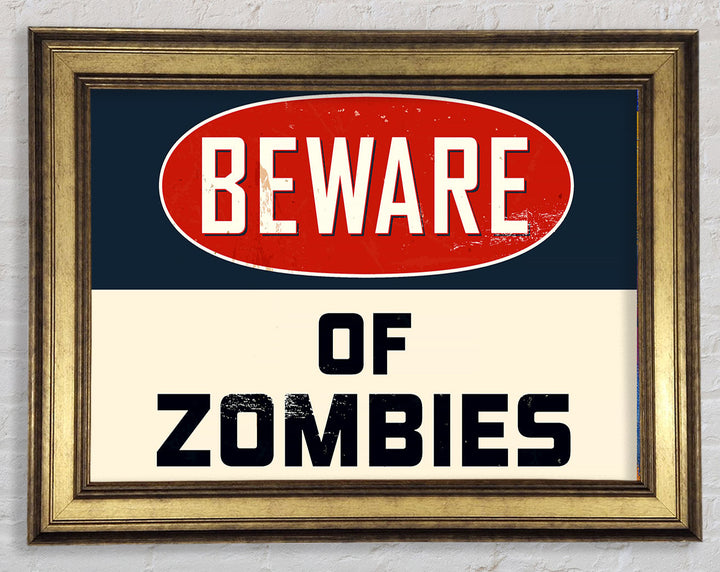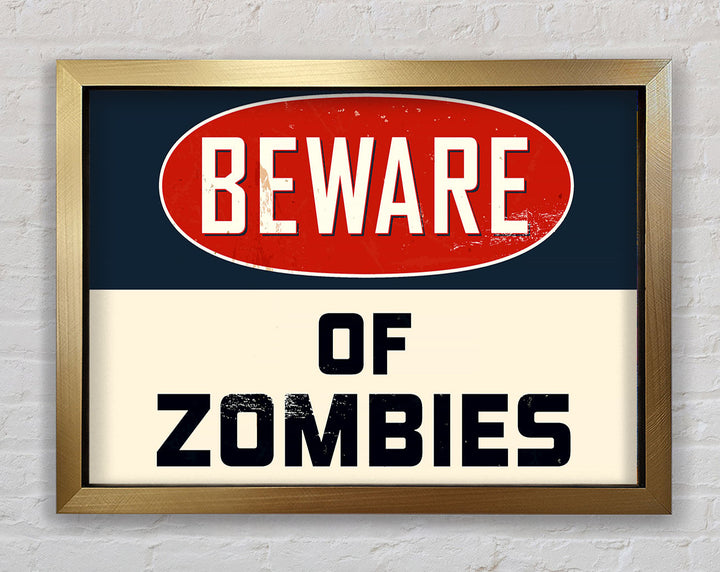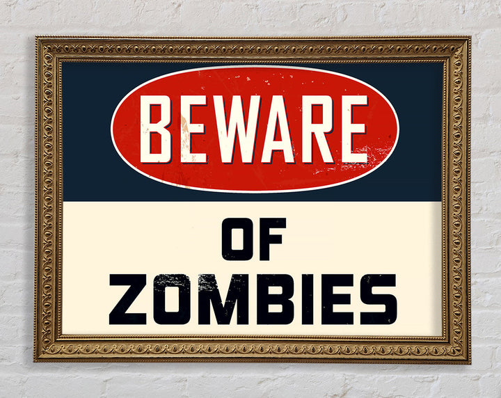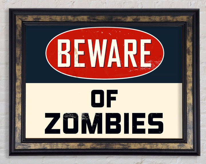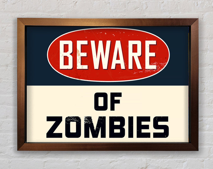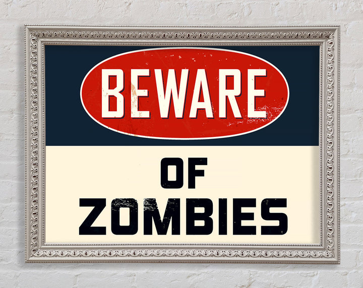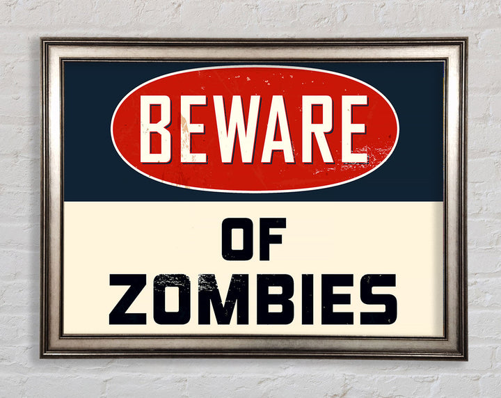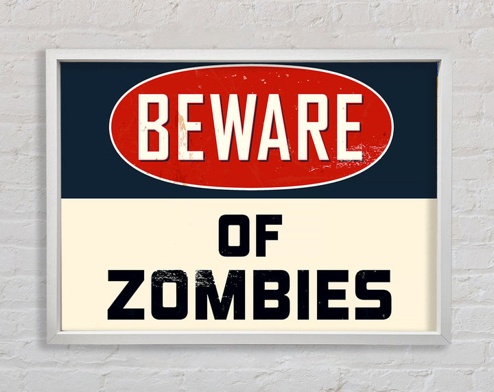 Introducing the "Beware Of Zombies" Framed Print, a unique piece of framed art that brings a touch of fun and spookiness to any space. This standout artwork is available in six sizes, ranging from small to oversized, ensuring you find the perfect fit for your room. With a variety of colors to choose from, you can easily match or contrast it with your existing decor. Each print is handmade in the United Kingdom, highlighting top-quality craftsmanship and attention to detail. The "Beware Of Zombies" Framed Print comes ready to hang, making it a hassle-free addition to your home. Add a quirky and stylish warning to your walls today!