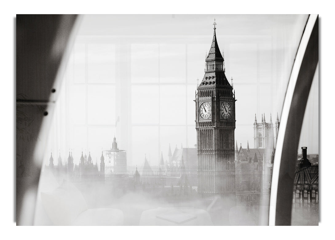 Big Ben Through The London Eye Mist acrylic print, UV printed onto 5mm thick acrylic glass. Comes with everything you need to hang on your wall.