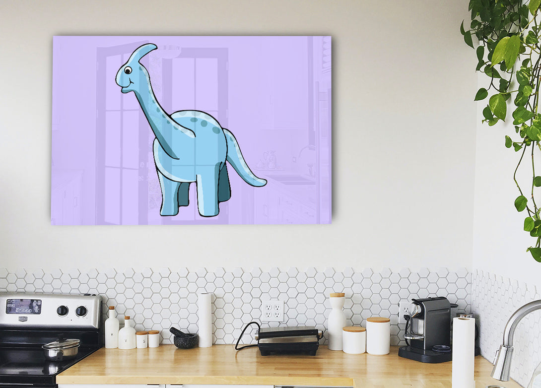 Big Funny Dinosaur Lilac acrylic print, UV printed onto 5mm thick acrylic glass. Comes with everything you need to hang on your wall.