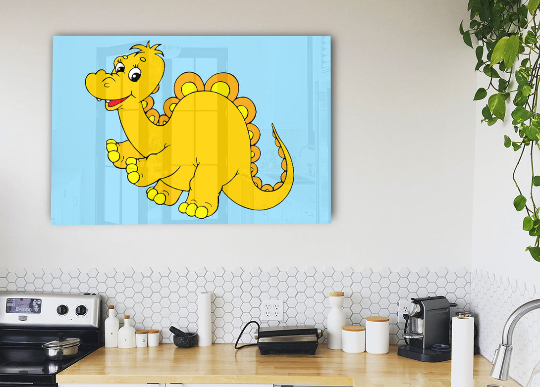 Big Happy Dinosaur Baby Blue acrylic print, UV printed onto 5mm thick acrylic glass. Comes with everything you need to hang on your wall.