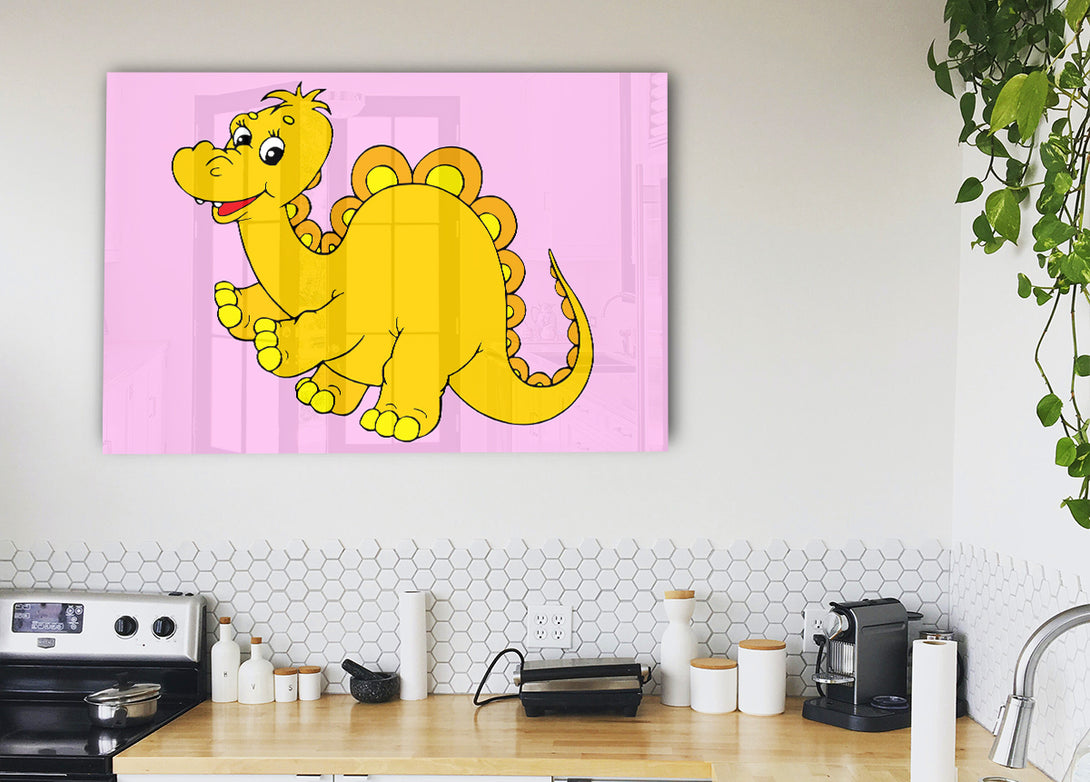 Big Happy Dinosaur Pink acrylic print, UV printed onto 5mm thick acrylic glass. Comes with everything you need to hang on your wall.