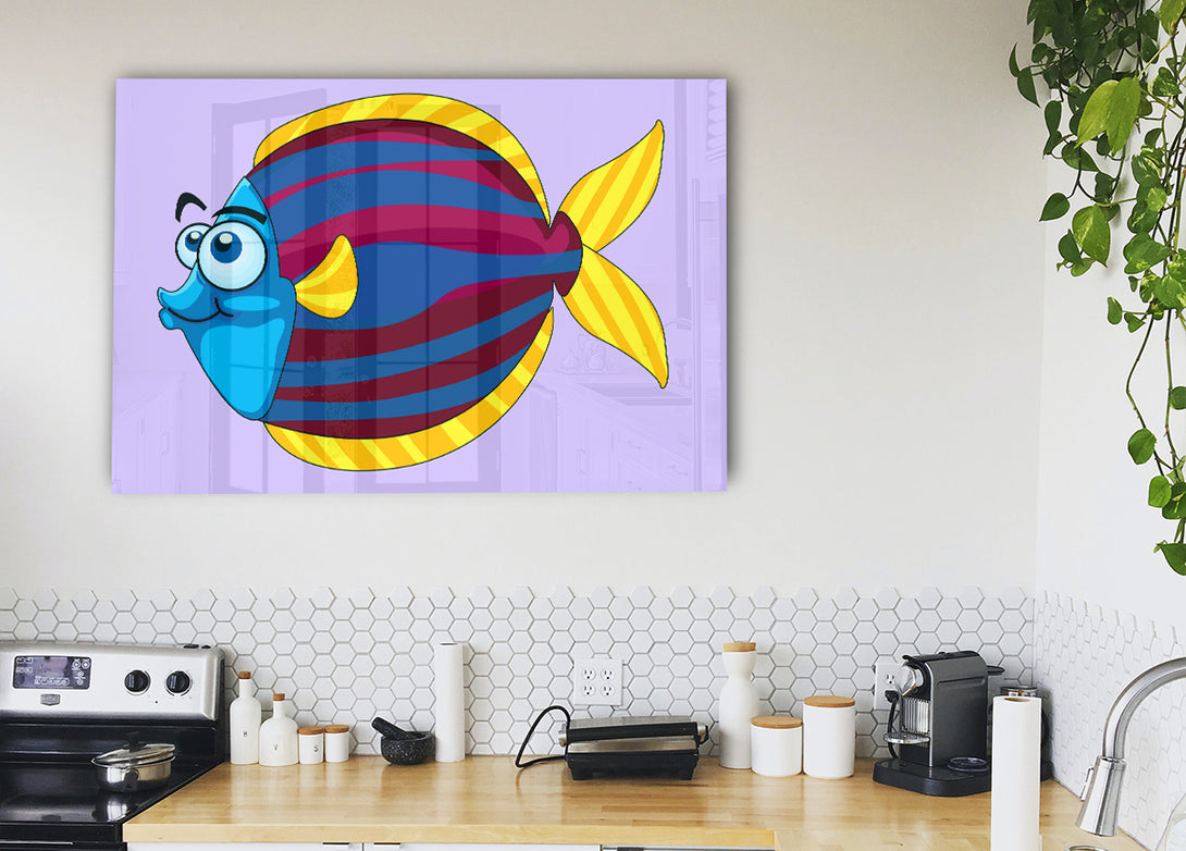 Big Happy Fish Lilac acrylic print, UV printed onto 5mm thick acrylic glass. Comes with everything you need to hang on your wall.