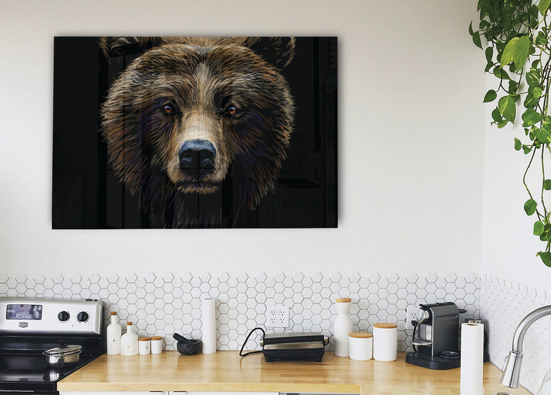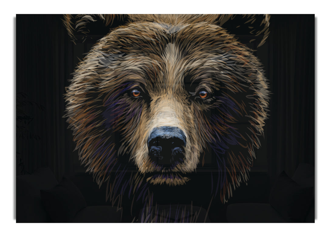 Big Scary Bear Face acrylic print, UV printed onto 5mm thick acrylic glass. Comes with everything you need to hang on your wall.