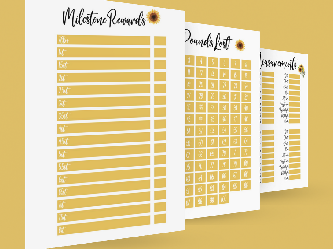 • 1x Pounds Lost Page (Up to 100lbs) – Visualize your progress as you track pounds lost over time.