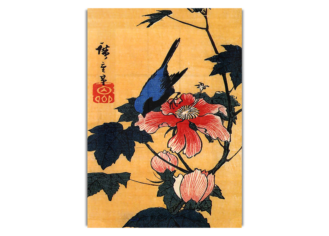 Bird On A Hibiscus Flower By Hiroshige