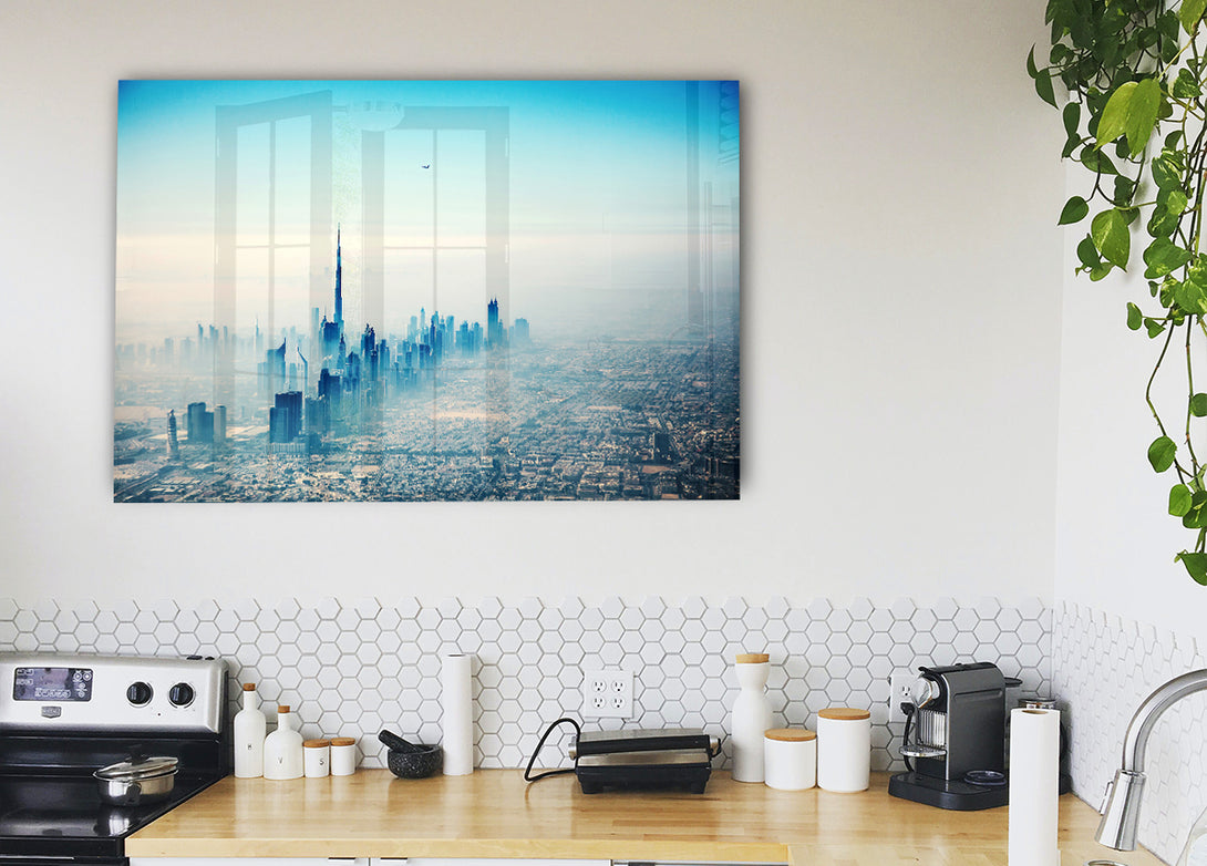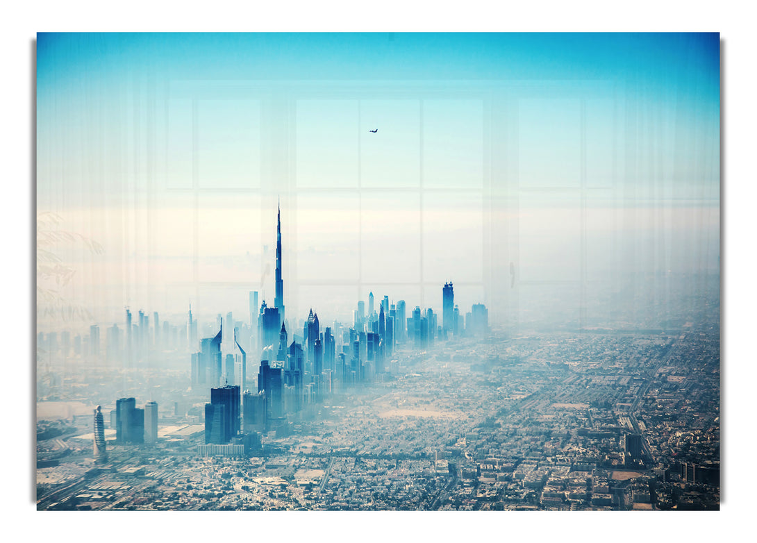 Bird Over The City acrylic print, UV printed onto 5mm thick acrylic glass. Comes with everything you need to hang on your wall.